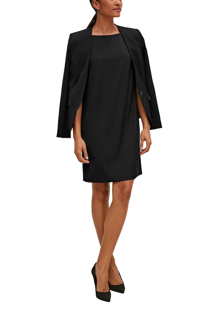 Oberstoff: 2% Elasthan, 98% Viskose; Futter: 49% Elastomultiester, 51% Polyester