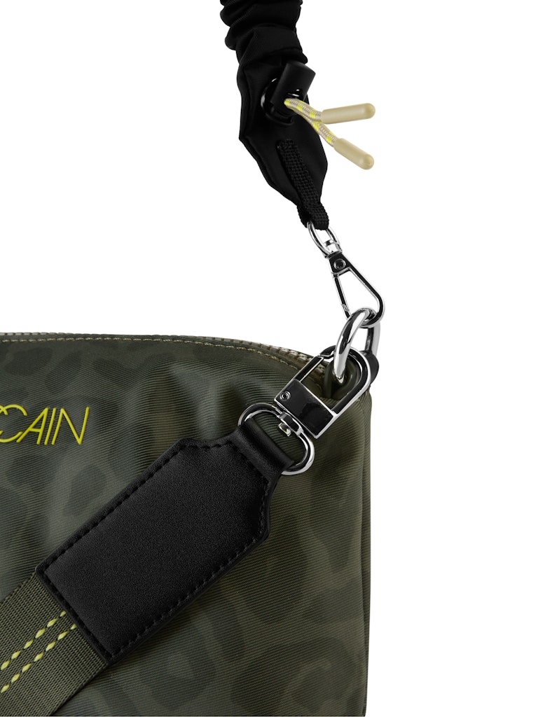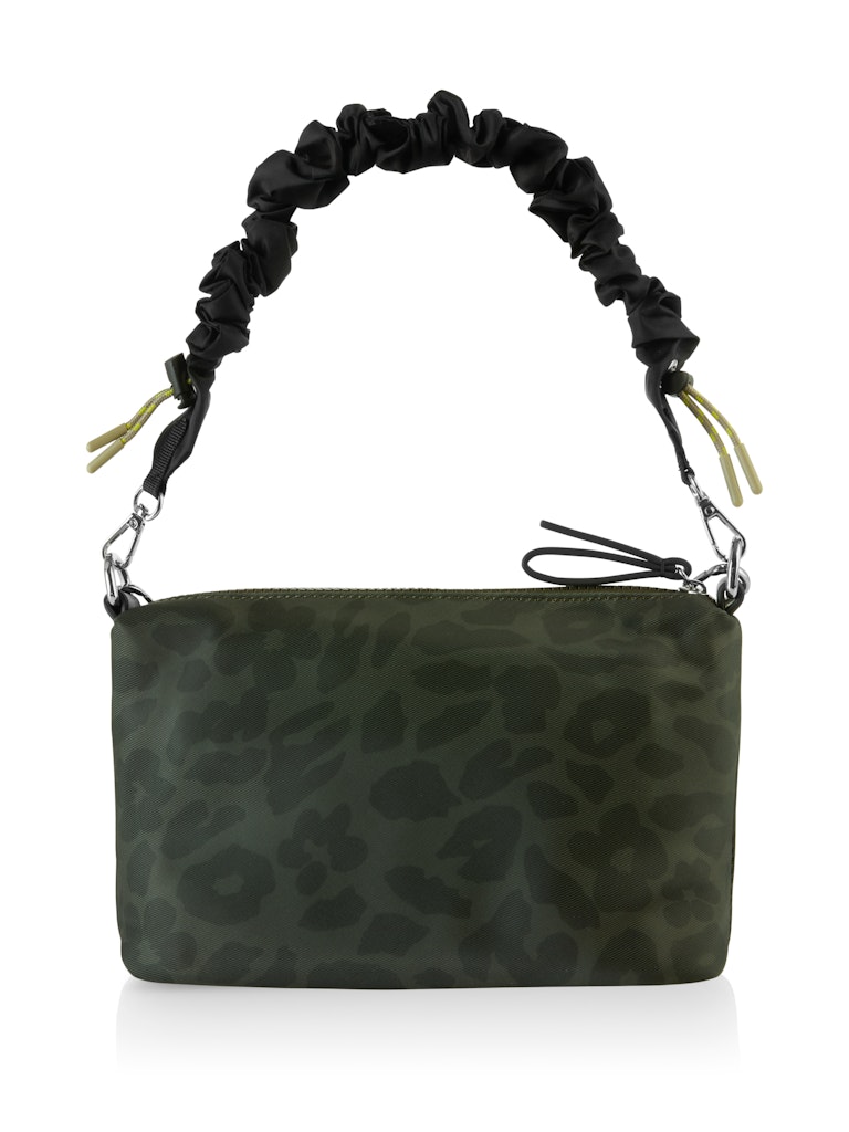 Kleine Leo-Schultertasche aus Nylon|Die kleine Schultertasche mit Leo-Druck besticht mit coolem Style. Die Tasche zeigt einen tonalen Schultergurt, der sich nach Belieben verstellen lässt, und einen Henkel aus Paracord. Ein markanter Reißverschlussverleiht Zugang zum Innenleben.|Rechteckig|Henkel aus Paracord|Reißverschluss|Größenverstellbarer Gurt|Maße: 24x8x15 cm