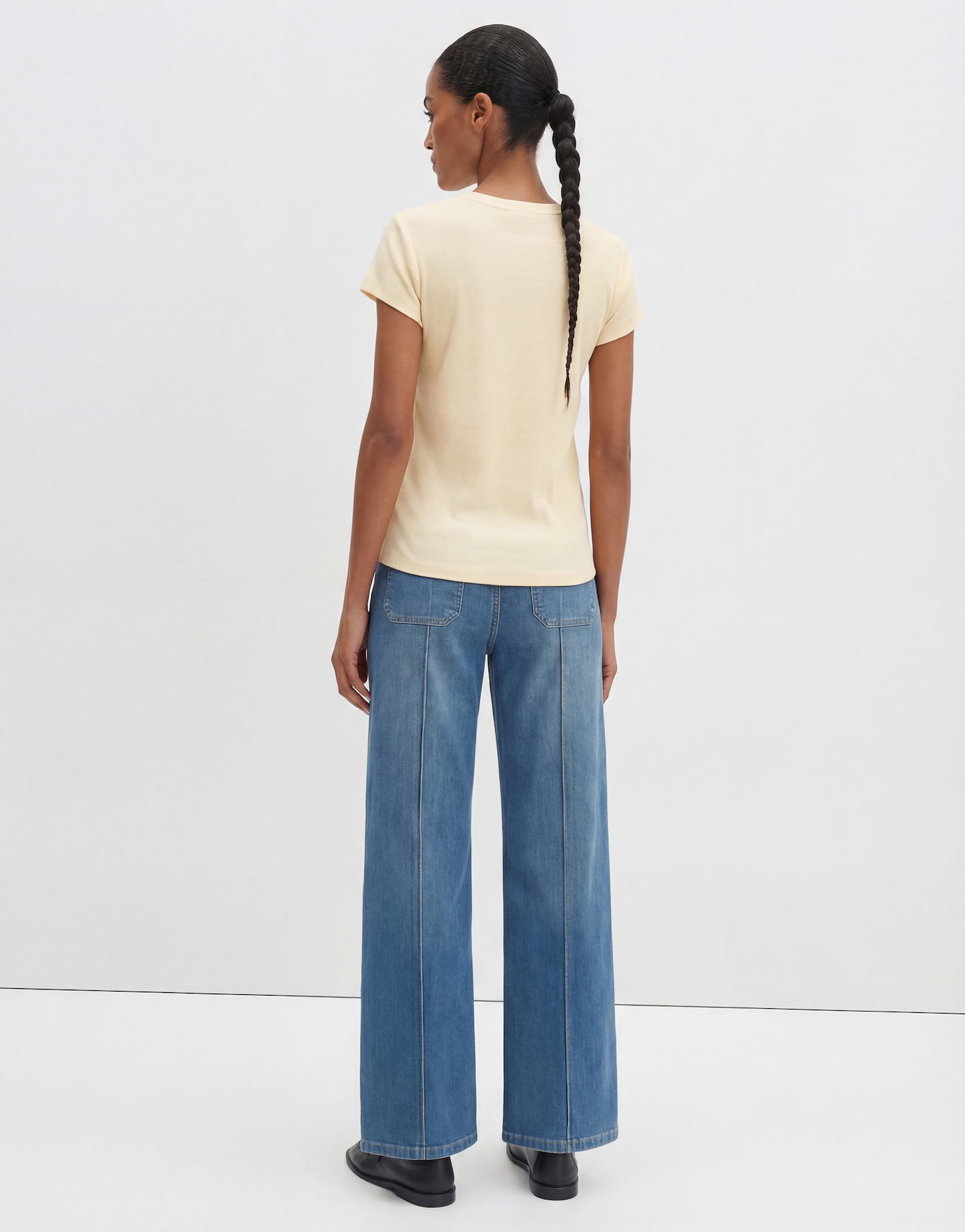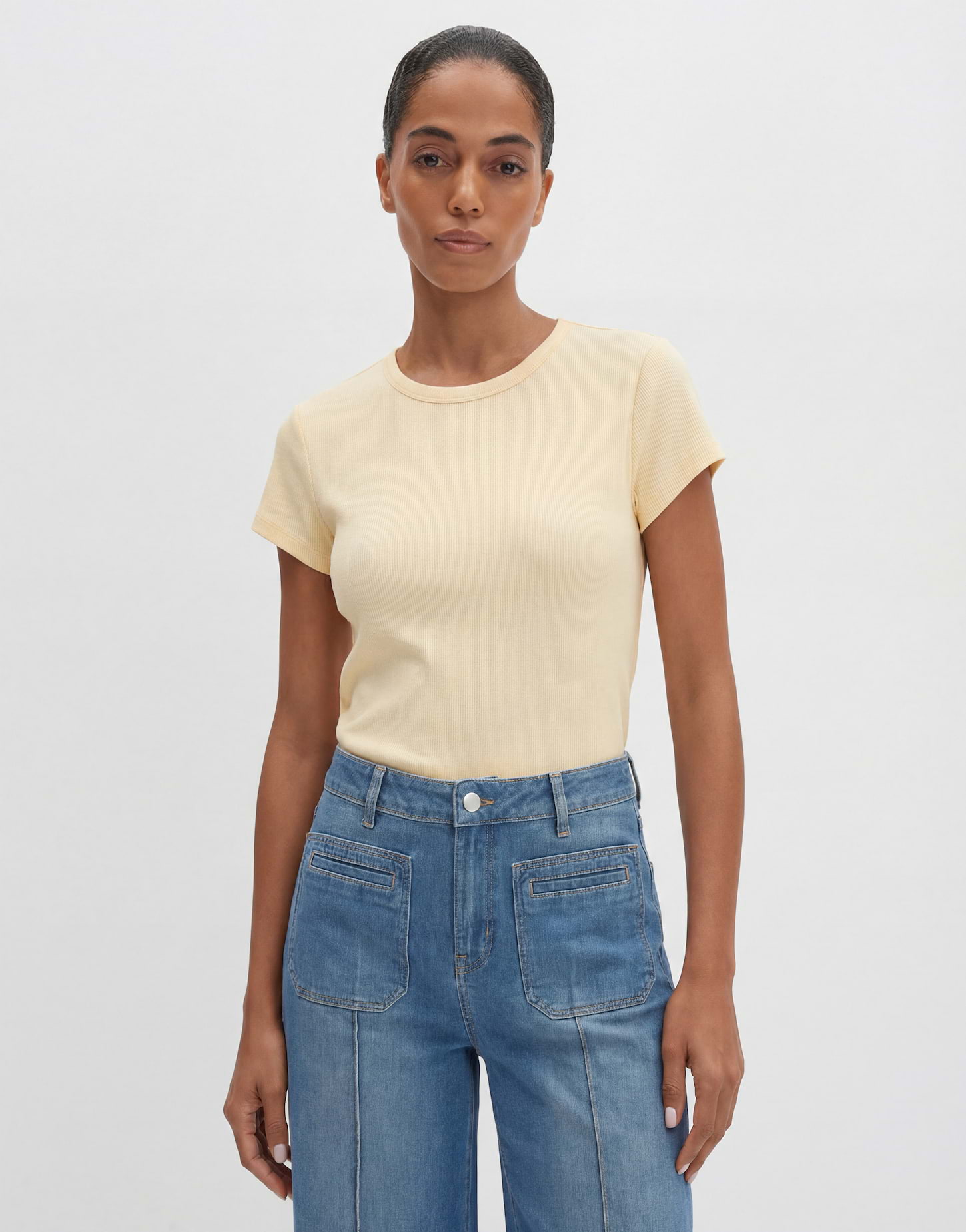 figurbetont geschnitten, schmale Passform, Kurzarm, Rundhalsausschnitt, Rückenlänge ca. 60 cm bei Größe 36, Model Größe 179 cm - trägt Größe 36, BCI Cotton Mix, Jersey, feine Rippstruktur, elastischer Stoff