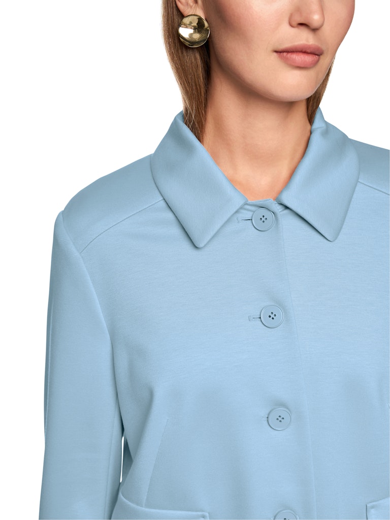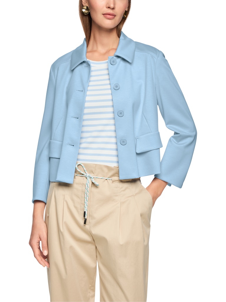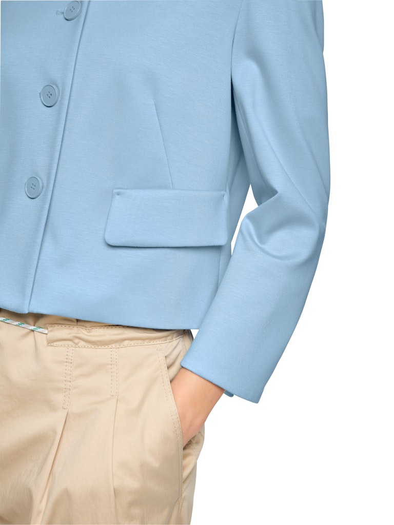 Kurze Jacke mit Kentkragen|Sixties-inspirierte Jacke. Die Form ist kurz und schmal und die Front ist mit Brustabnähern gearbeitet. Typisch sind der Kentkragen, der Knopfverschluss und die Pattentaschen. Das Modell ist aus einem viskose-basierten Fasermix mit geringem Elasthan-Anteil - und ungefüttert. Wirkt toll zu weichfließenden Kleidern und Bottoms.|Schmal geschnitten|Brustabnäher|Schulterpasse|Ungefüttert|Das Model ist 179 cm groß und trägt N3/38.