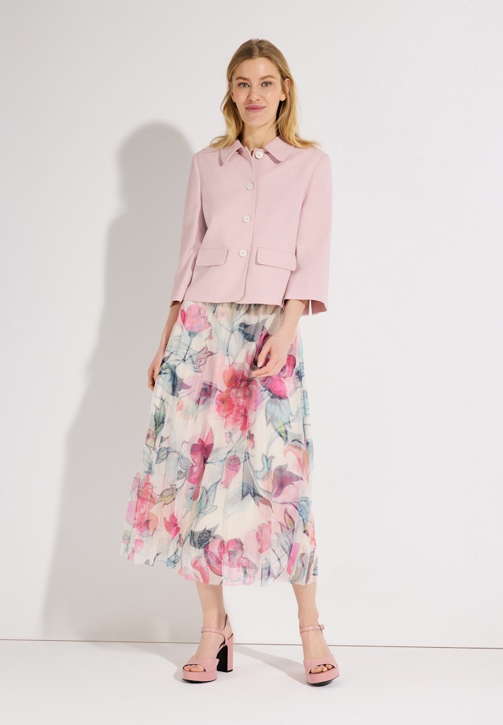 Die kurze Blazerjacke von MORE & MORE mit 3/4 langen Ärmeln ist ein stilvoller Begleiter für vielseitige Office- und Freizeitlooks. Sie kann mit passender Marlenehose zu einem sommerlichen Business-Outfit kombiniert werden, funktioniert aber genauso gut mit lässiger Jeans oder zu femininen Kleidern und Röcken.