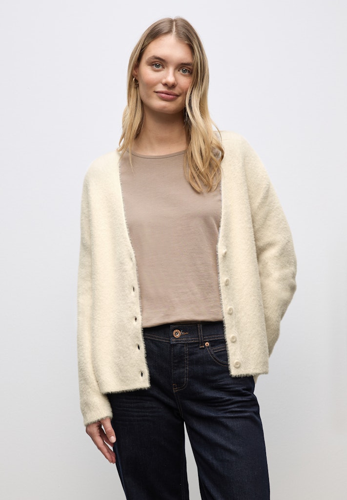 Diese Strickjacke von Street One für Damen überzeugt mit einem V-Ausschnitt und ihrer soften Federgarn-Qualität. Die Knopfleiste sorgt für klassischen Chic, während der kuschelige Tragekomfort perfekt für gemütliche Looks ist. Ein Cardigan, der feminine Lässigkeit stilvoll unterstreicht. Strickjacke V-Ausschnitt Langarm Knopfleiste Weiche Federgarn-Qualität Material: 78% Polyamid, 12% Polyacryl, 10% Baumwolle