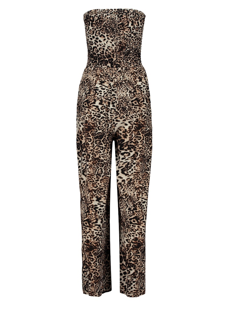 Gemusterter Romper ohne Ärmel. Gesmoktes, elastisches Oberteil und leicht ausgestelltes Unterteil.