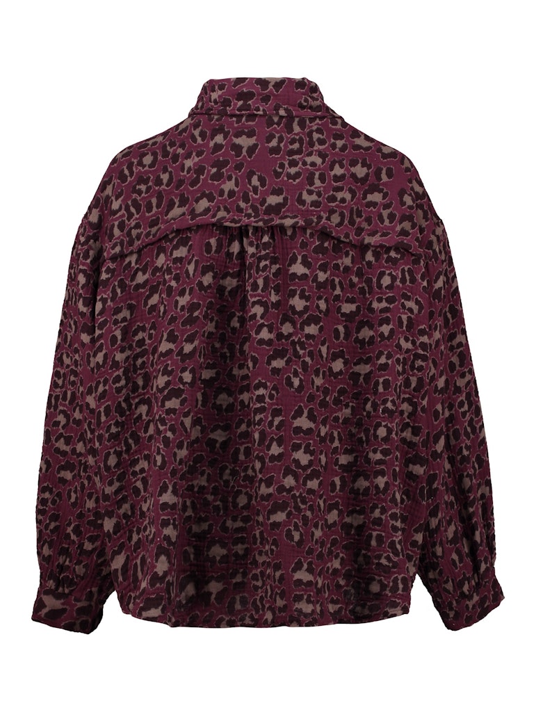 Musselin Bluse mit Print. Lange Ärmel, Kragen und durchgehende Knopfleiste.