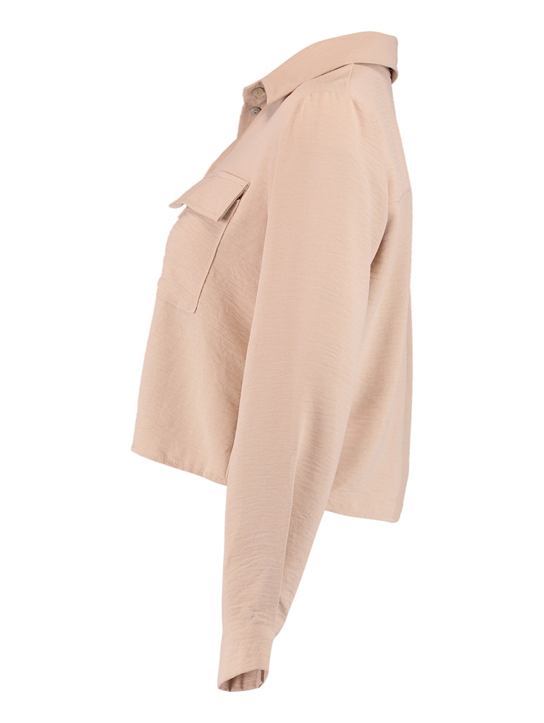 Langarm-Bluse mit Kragen und durchgehender Knopfleiste. Aufgesetzte Brusttaschen.