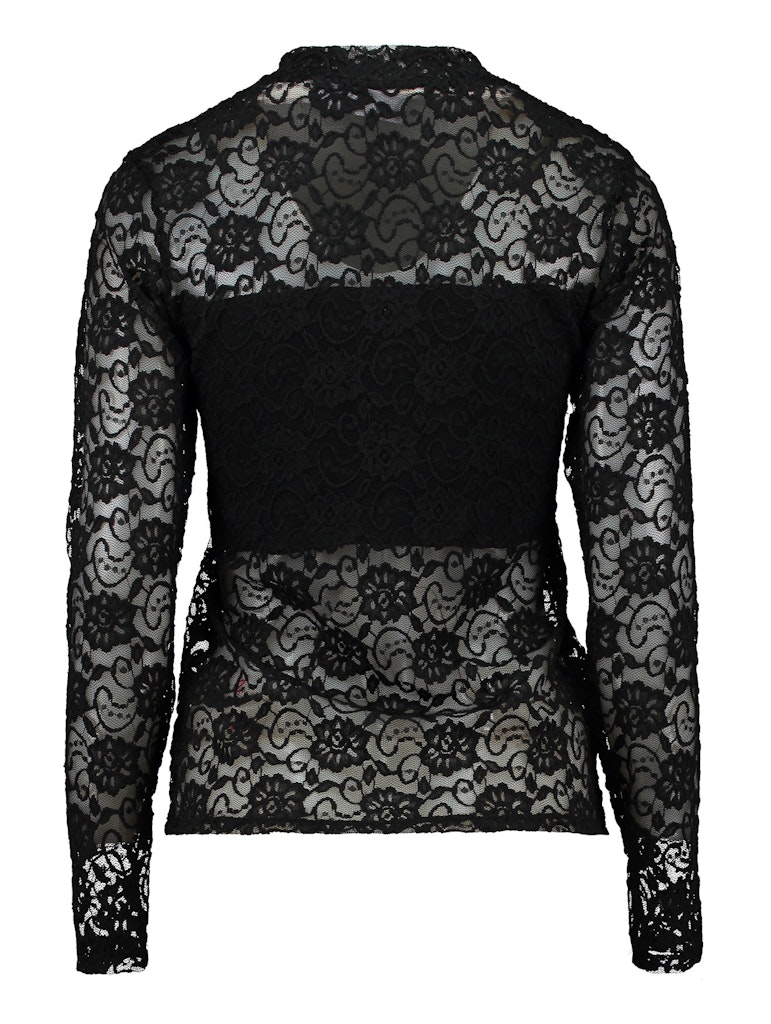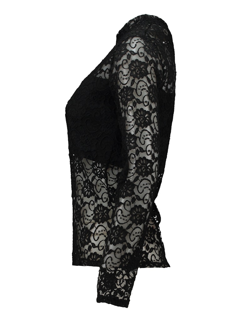 Langärmliges Spitzenoberteil in floralem Muster, mit einem eingenähten Bandeautop, sowie einem kleinen Stehkragen