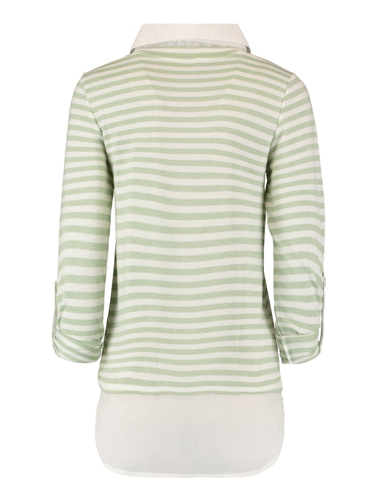 Gestreifter Pullover mit Bluseneinsatz und Krempelfunktion.