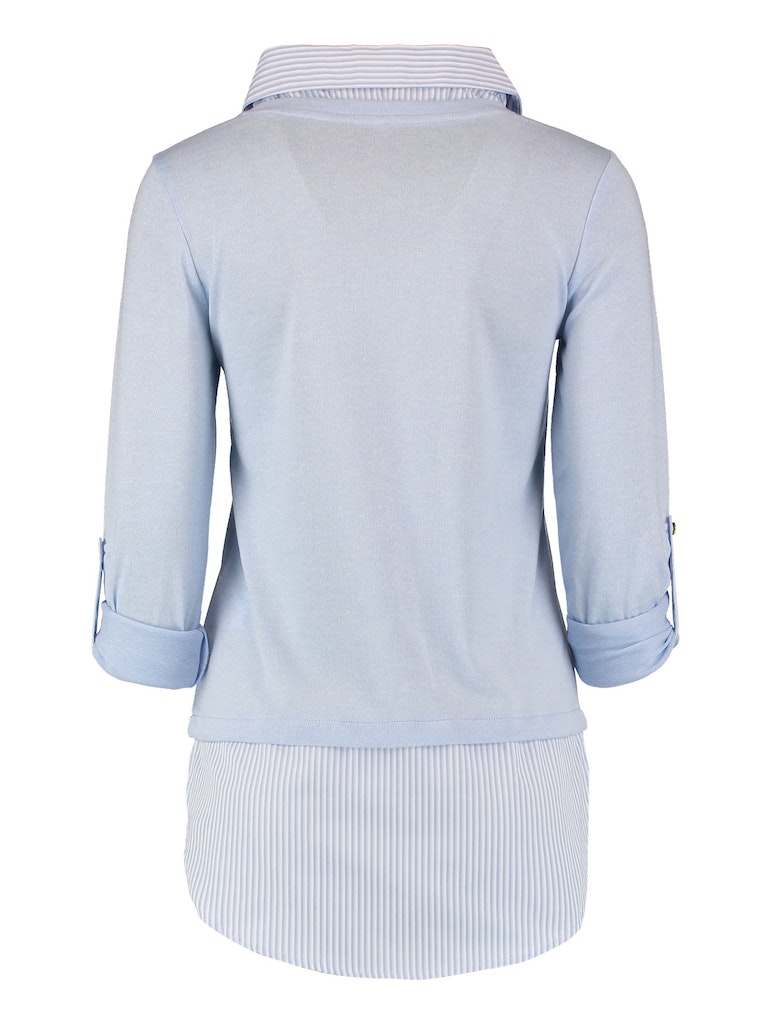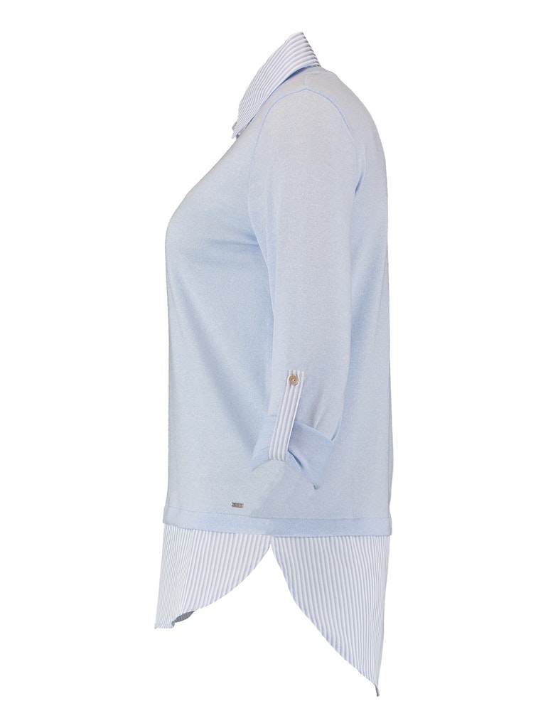 Pullover mit Bluseneinsatz, Bluseneinsatz mit Streifenmuster, Pullover mit Krempelfunktion.