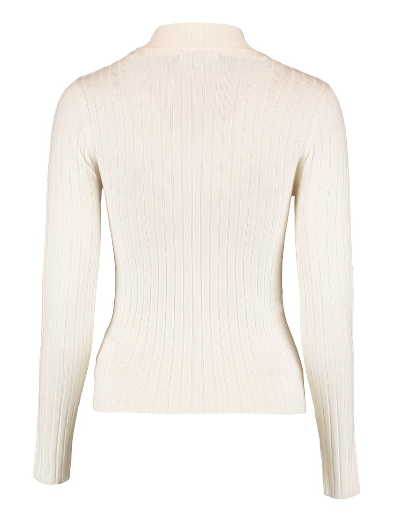 Leicht elastischer Feinstrickpullover mit Stehkragen, einem geraden Saum und einer abgesteppten Kante. Weicher Griff