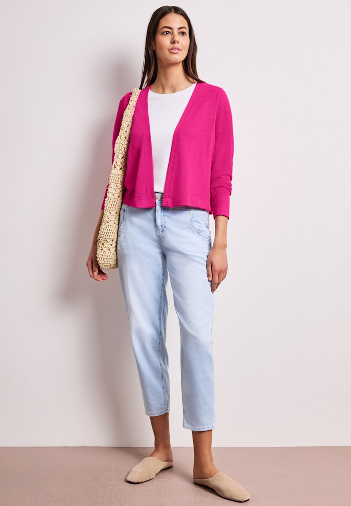Diese offene Jacke von Street One für Damen ergänzt dein Outfit mit einem soften Strick-Look und einem wunderbar angenehmen Material. Der leichte Viskosemix sorgt für hohen Tragekomfort und macht sie zu einem perfekten Layering-Piece. Dank der offenen Form fällt sie locker und unkompliziert. Im Style Nette wird sie zum vielseitigen Allrounder für feminine Casual-Looks. Strick-Look Jacke Casual Offen zu tragen Langarm Vielseitiges Layering-Piece Material: 60% Viskose, 40% Polyester