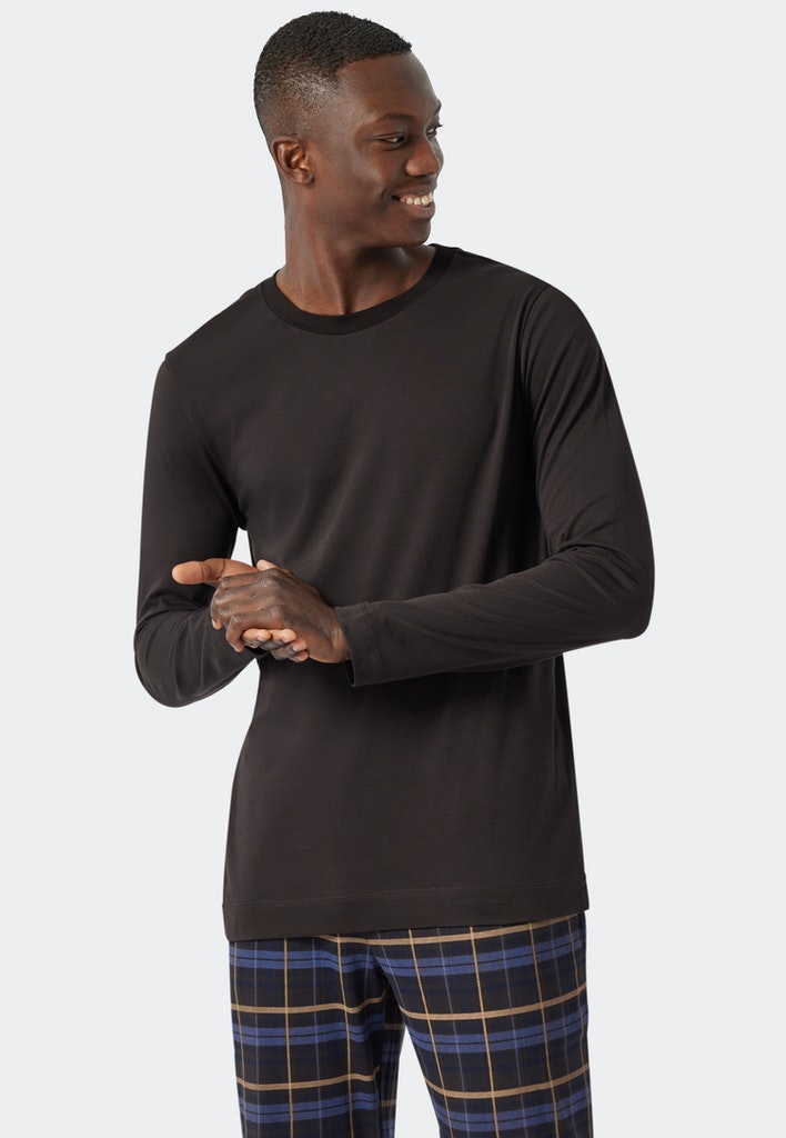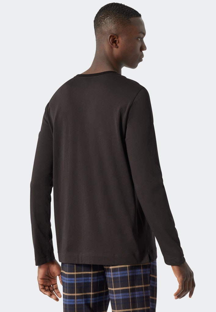 Ihr neues Lieblingsstück für entspannte Tage und erholsame Nächte: Dieses dunkelbraune Langarmshirt für Herren vereint 100% reine hochwertig merzerisierte Organic Cotton mit einem lässigen Schnitt. Das bequeme Shirt mit rundem Halsausschnitt lässt sich ganz unkompliziert kombinieren und verspricht in weichem Single Jersey mit dezent glänzender Optik hohen Tragekomfort. Ein wärmendes Basic in bewährt bester SCHIESSER-Qualität, das ganzjährig zum Wohlfühlen einlädt!