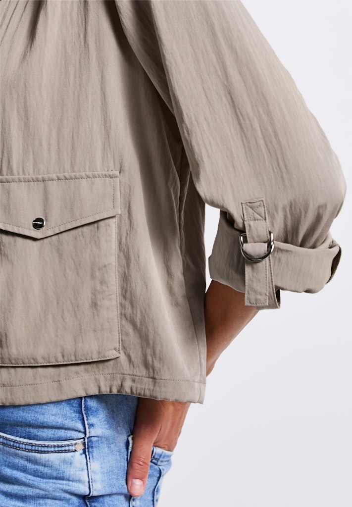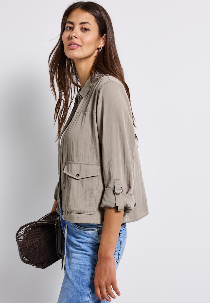 Diese sommerliche Strukturjacke von Street One für Damen vereint den Charme eines Overshirts mit modischen Details. Aufgesetzte Taschen, ein Hemdkragen und Turn-Up-Ärmel verleihen dem Look eine lässige Note, während der Tunnelzug am Saum für individuellen Sitz sorgt. Der leichte Stoff trägt sich angenehm und macht die Jacke zum idealen Layering-Piece. Overshirt mit aufgesetzten Taschen Hemdkragen Langarm mit Turn-Up Tunnelzug am Saum Angenehmer Tragekomfort Material: 65% Viskose, 35% Nylon