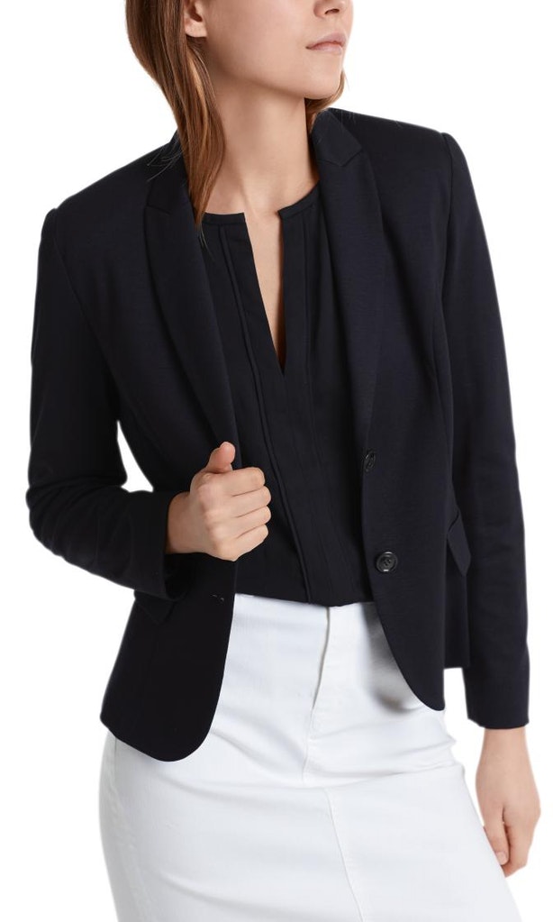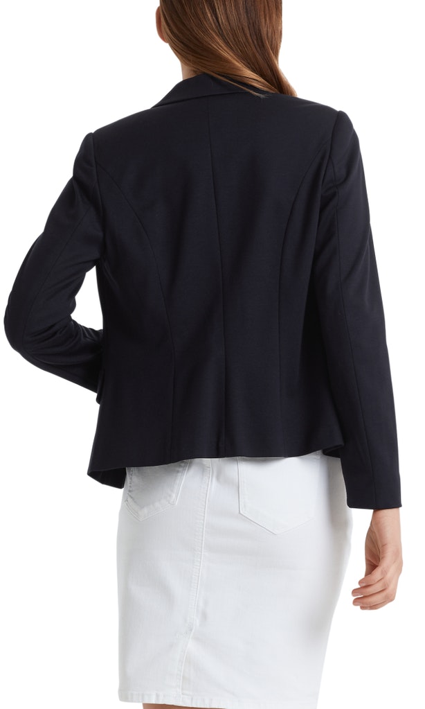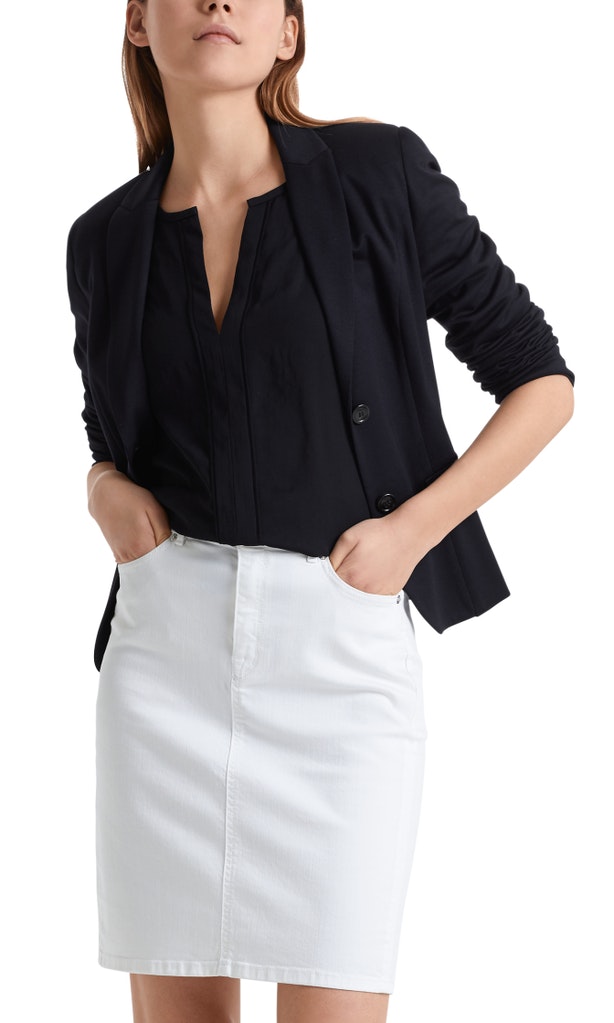 Leichter Blazer aus feinem Jersey|Blazer aus hochwertigem Jersey mit schmalem Revers und angedeuteten Klappentaschen. Der Blazer wird vorne mittig mit zwei Knöpfen geschlossen. Die Ärmel sind gefüttert.|Farbe: black|Viskosemischung|Figurbetonter Schnitt|Das Model ist 179 cm groß und trägt N3/38.|Gefütterte Ärmel