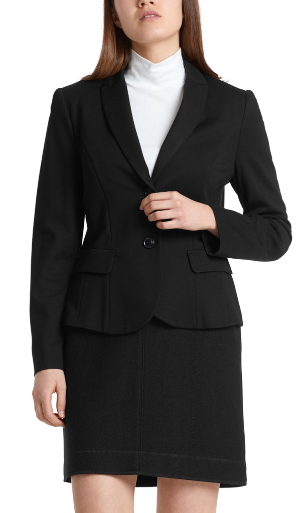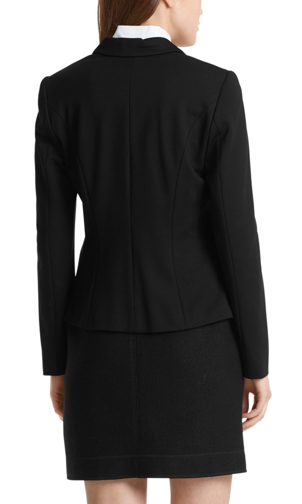 Leichter Blazer aus feinem Jersey|Blazer aus hochwertigem Jersey mit schmalem Revers und angedeuteten Klappentaschen. Der Blazer wird vorne mittig mit zwei Knöpfen geschlossen. Die Ärmel sind gefüttert.|Farbe: black|Viskosemischung|Figurbetonter Schnitt|Das Model ist 179 cm groß und trägt N3/38.|Gefütterte Ärmel