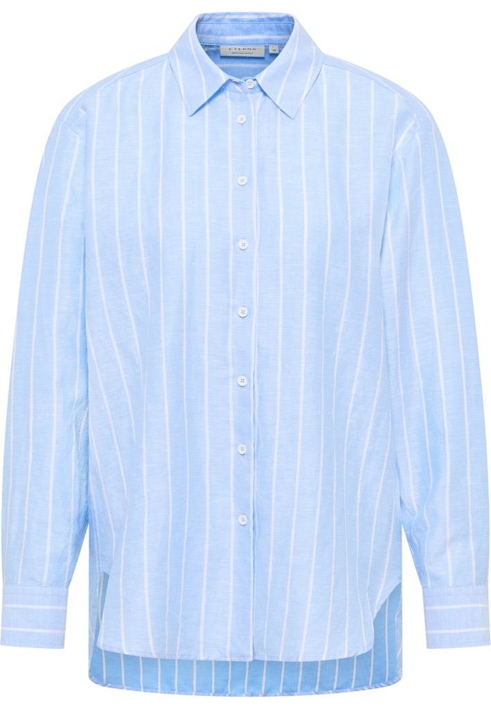 Unser gestreiftes LINEN SHIRT besticht durch seine edle Qualität aus 59% Baumwolle und 41% Leinen.