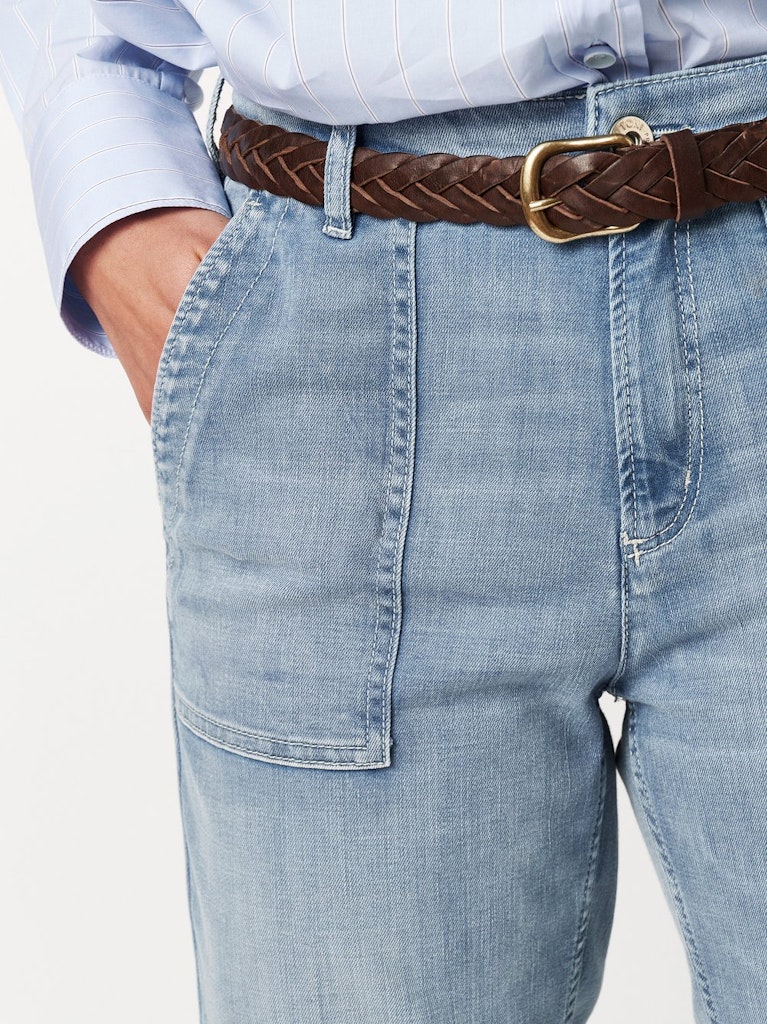 Damenjeans Liv Cargo 7/8 - Summer Blue Bleached - Qualität: Light Slub Denim - Regular Fit-Hose mit schmalem Beinverlauf - Normale Taille und moderne Leibhöhe - Elastischer Dehnbund für ein angenehmes Tragegefühl