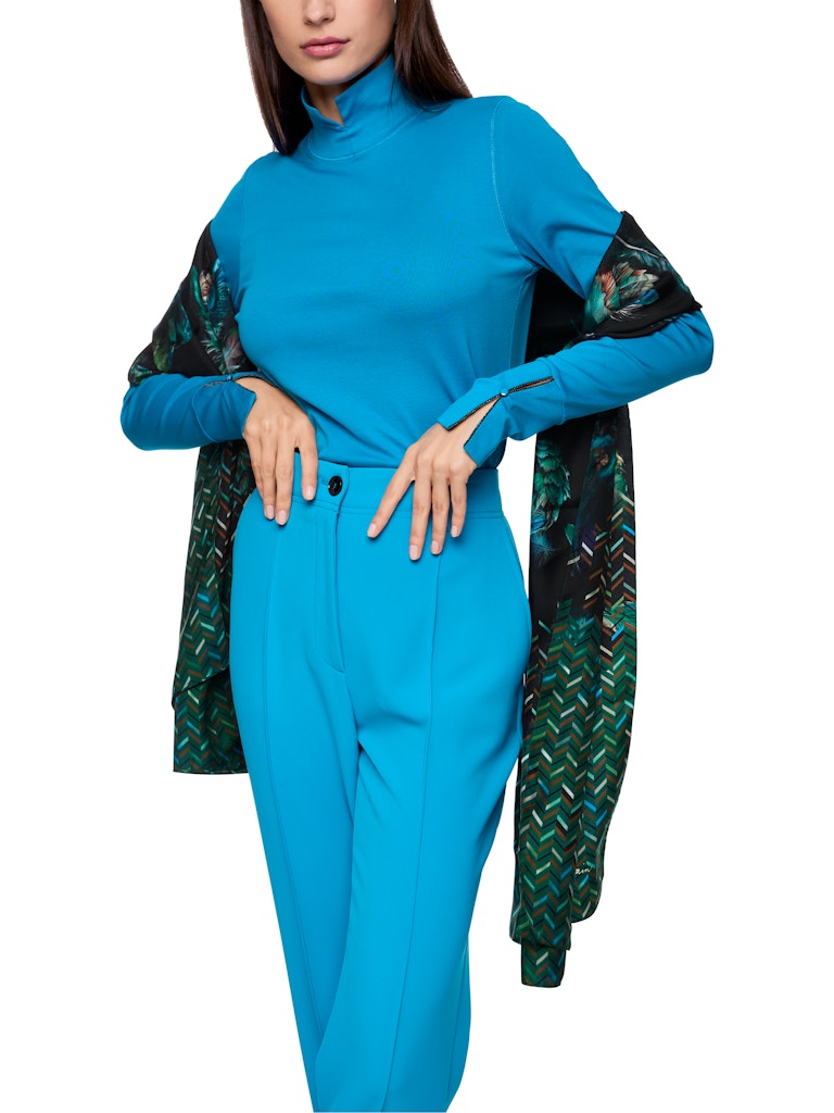 Longsleeve T-Shirt|Softes T-Shirt aus Baumwolle mit Elastan. Dieses T-Shirt ist das ideale Basic für kühlere Tage. Es kommt mit Rollkragen und langem Arm. Blickfang ist der schmückende Knopf am geschlitzten Ärmelbund. Die taillierte Silhouette betont die Figur.|Taillierte Silhouette|Schmuckknopf am Ärmel|Softer Griff|Rollkragen mit Schlitz|Das Model ist 179 cm groß und trägt N3/38.