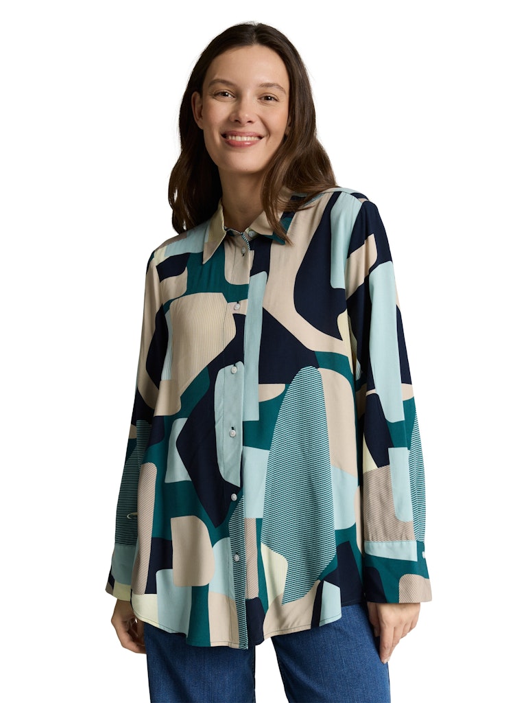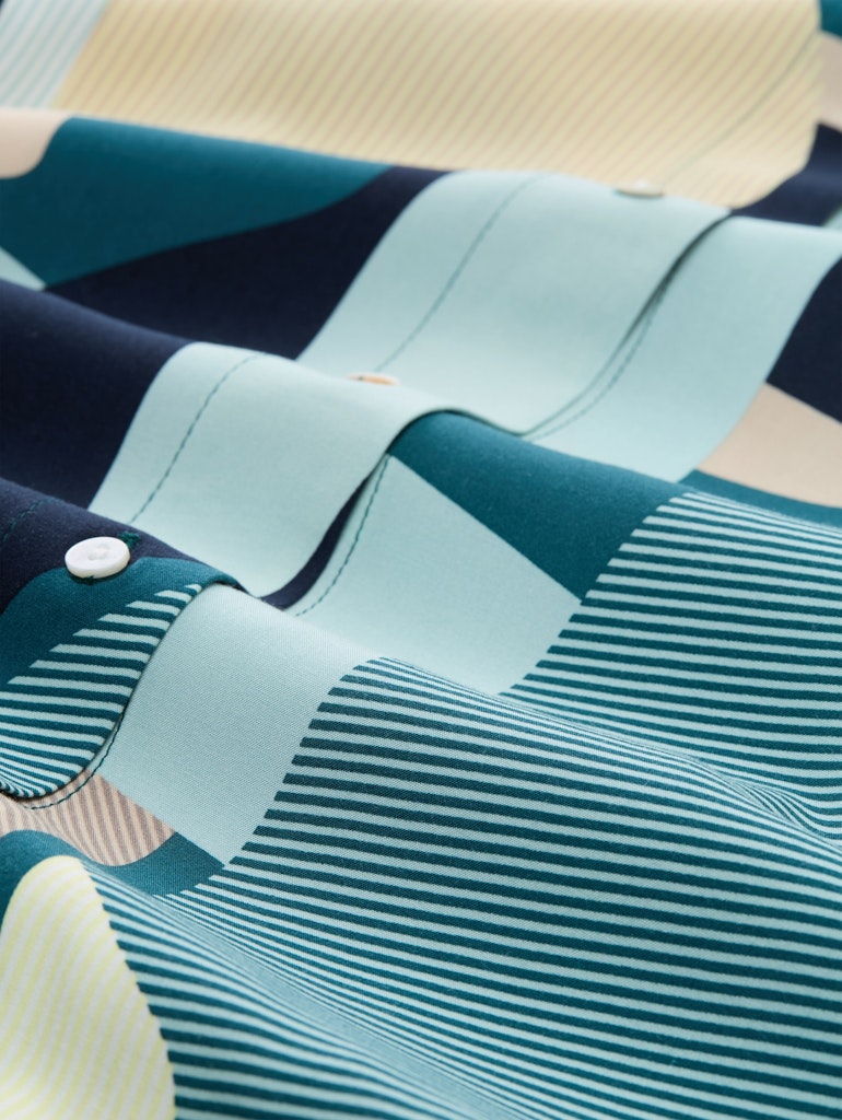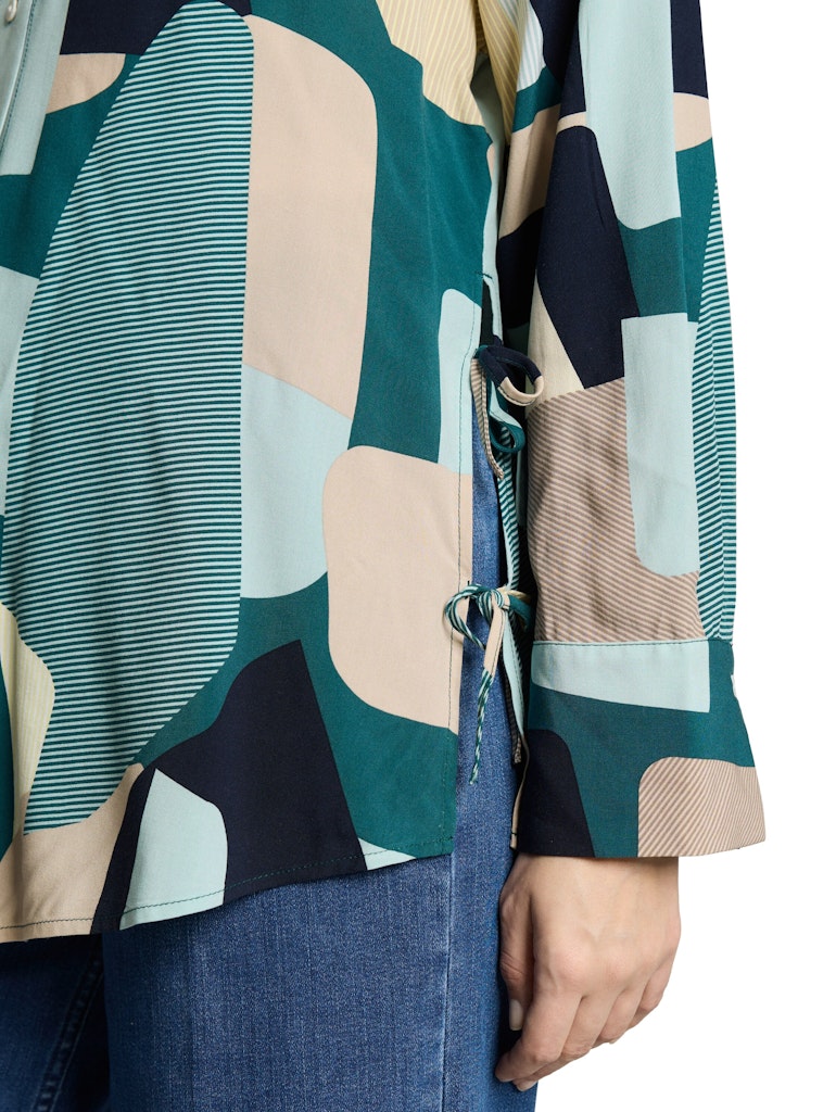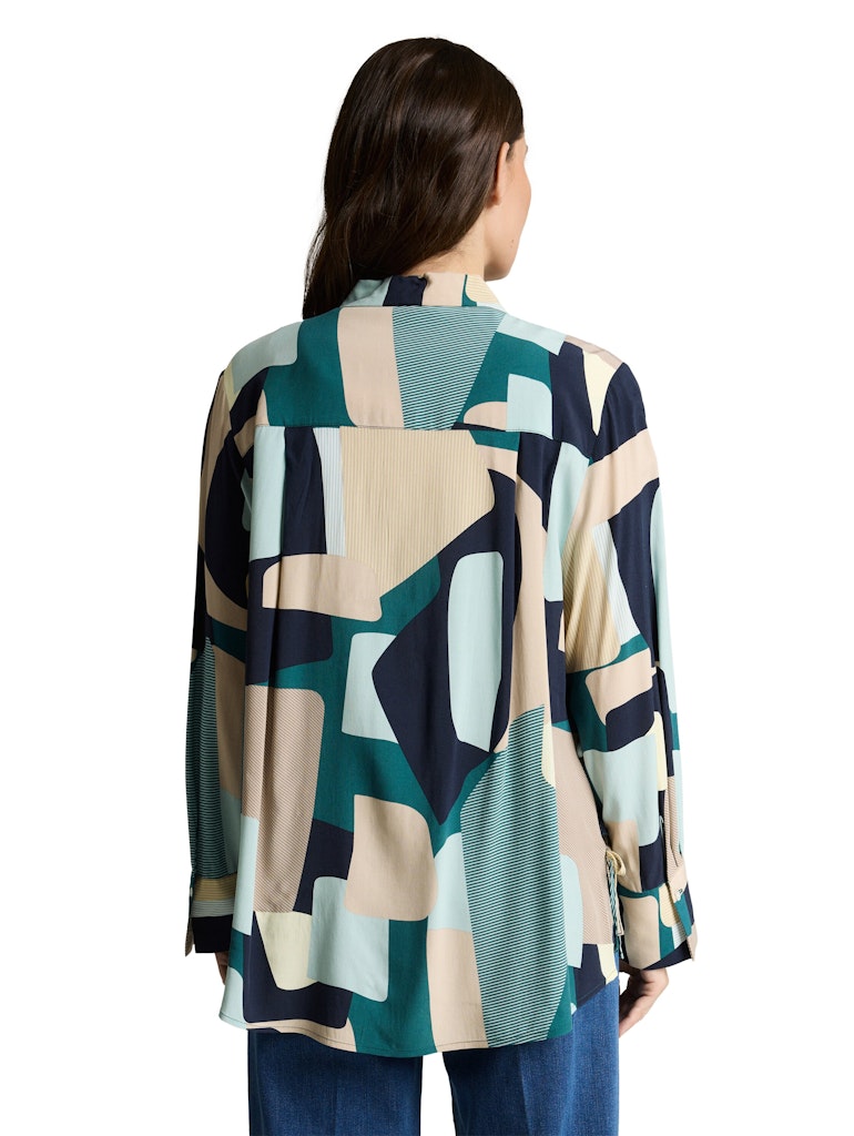 Locker geschnittene Bluse mit überschnittener Schulternaht. Mit Schlitzen und Schleifen-Details an den Seiten. Aus einem glänzenden Viskose-Stoff.