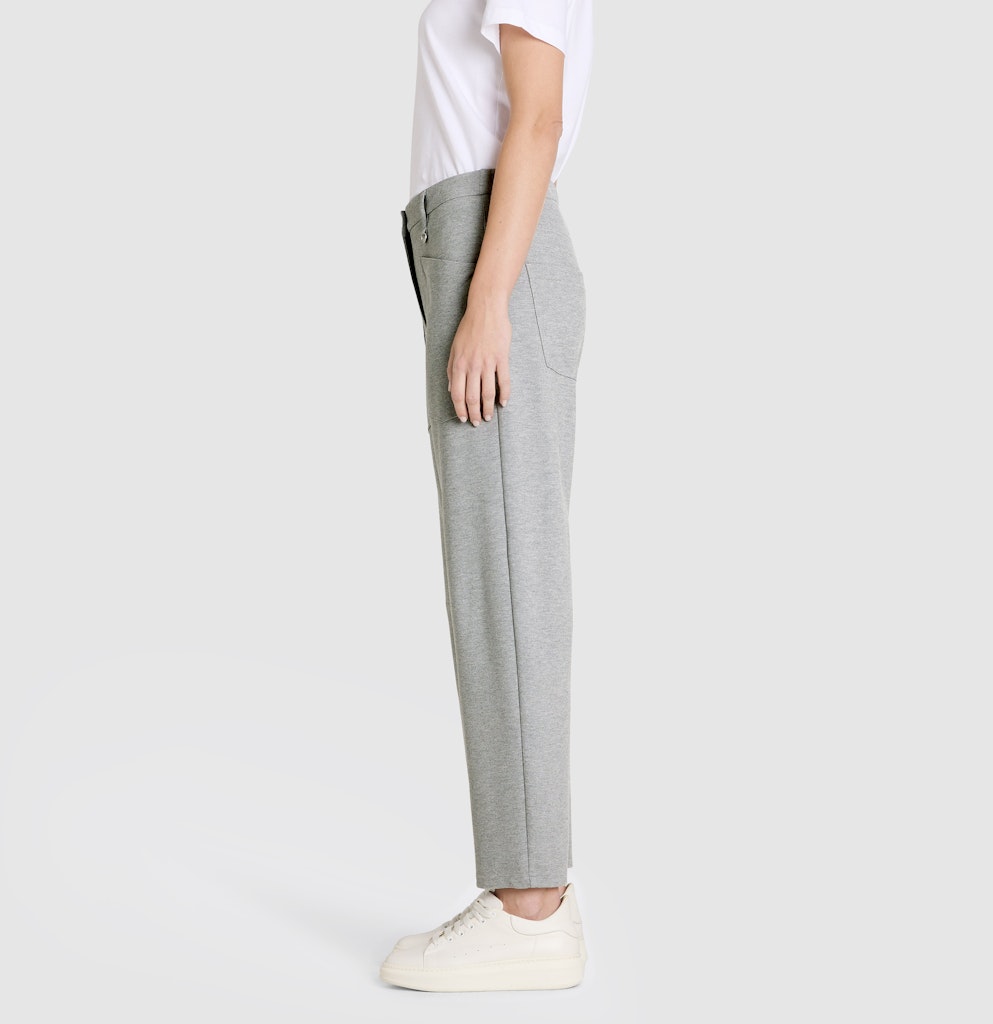 Loose Fit, Barrel Leg, komfortables Bein mit weiterem Schnitt ab Oberschenkel, mittlere Leibhöhe, bequeme Taille, Baggy-Modell, Five Pocket, große, aufgesetzte Taschen, Light Jersey, leichte, elastische Jersey-Qualität im Mix mit Viskose, hervorragende Passform, sehr weicher Griff, moderne, cleane Optik, hoher Tragekomfort, pflegeleicht, Das Model ist 1,75m groß und trägt die MAC Hosengröße 36, Fußweite bei Größe 36: 39cm