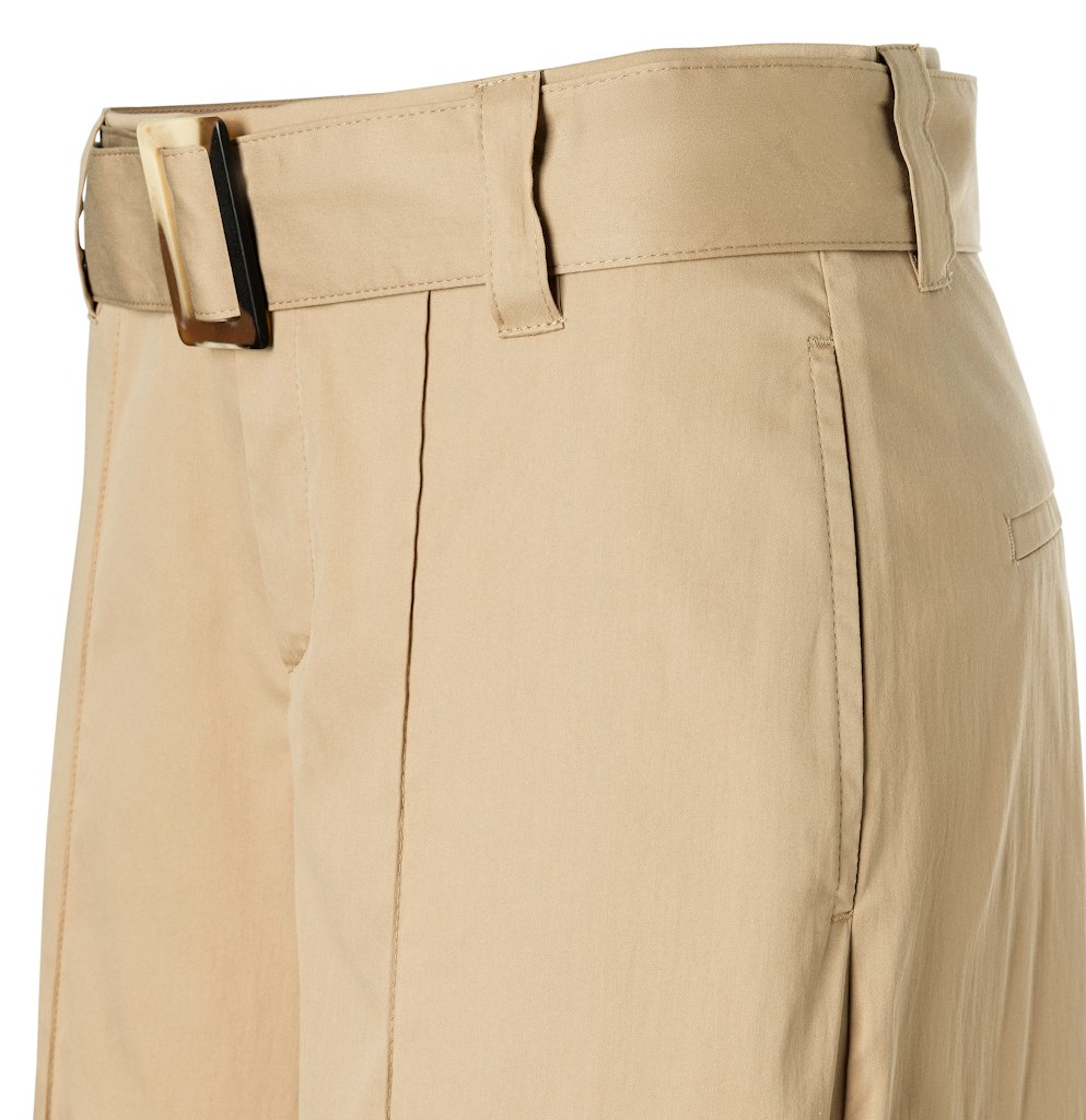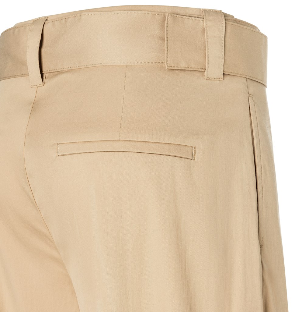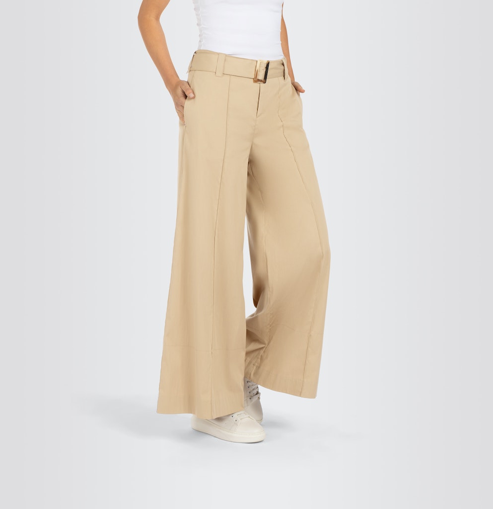 Wide Fit, Culotte, Wide Leg, gerades, weites Bein, verkürzte Länge, normale Leibhöhe, Gürtel-Detail mit Schmuck-Schließe, feine Biesennähte vorne, hochwertige, besonders feine Baumwoll-Qualität mit Papertouch, zarte, raschelnde Oberfläche wie Papier, sehr reißfest und strapazierfähig im Material, sehr leichtes Tragegefühl, moderne, sportive Optik, angenehm kühl auf der Haut, hoher Tragekomfort, über Better Cotton gesourcte Baumwolle, Das Model ist 1,75m groß und trägt die MAC Hosengröße 36, Fußweite bei Größe 36: 86cm