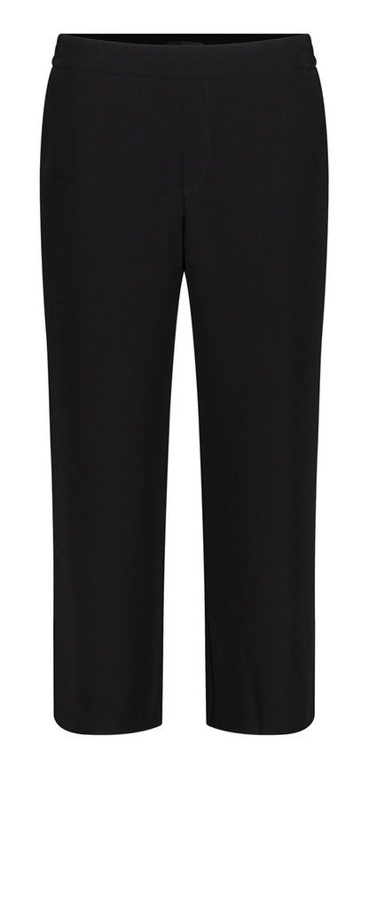 Wide Fit, Wide Leg, weites, gerades Bein, verkürzte Länge, Culotte, mittlere Leibhöhe, bequemer, elastischer Bund, Jump In-Modell, seitliche Eingrifftaschen vorne, Paspeltaschen hinten, Floating Crepe, hochwertige, langlebige Polyester-Krepp-Qualität, elegant-sportiver Look mit fließendem Fall, sehr angenehmer Griff, leicht im Gewicht, pflegeleicht, hervorragender Tragekomfort, Das Model ist 1,75m groß und trägt die MAC Hosengröße 36, Fußweite in Größe 36: 52cm
