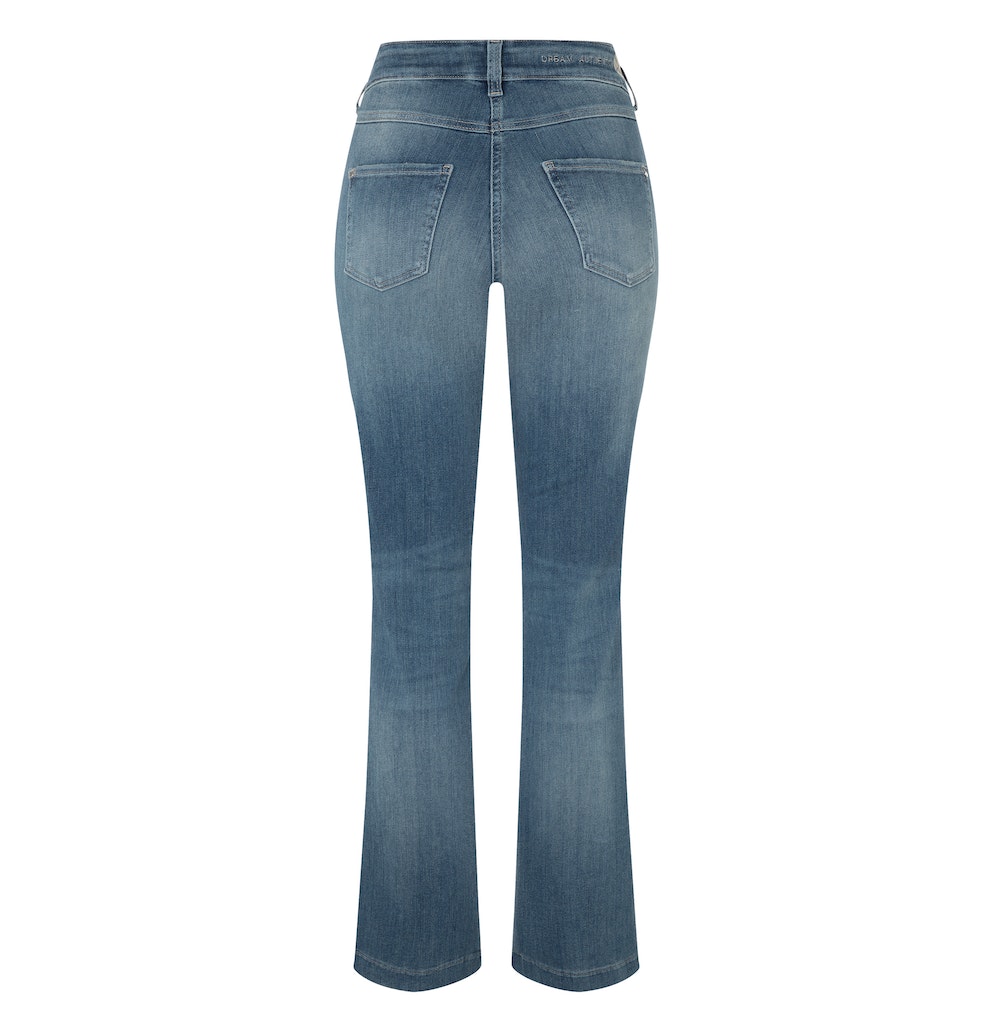 Flared Fit, Bootcut, gerades Bein, ausgestellter Saum, mittlere Leibhöhe, bequeme Taille, Five Pocket, Authentic Mega Flex Denim, sehr elastische Hyperstretch-Qualität mit Elastomultiester, hoher Tragekomfort, figurformender Shaping-Effekt, hervorragendes Rücksprung-Verhalten, weicher Griff, authentische Jeans-Optik, über Better Cotton gesourcte Baumwolle, Das Model ist 1,75m groß und trägt die MAC Hosengröße 34, Fußweite bei Größe 36: 45cm, Unsere Empfehlung: Das Modell eine Größe kleiner wählen!