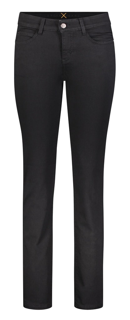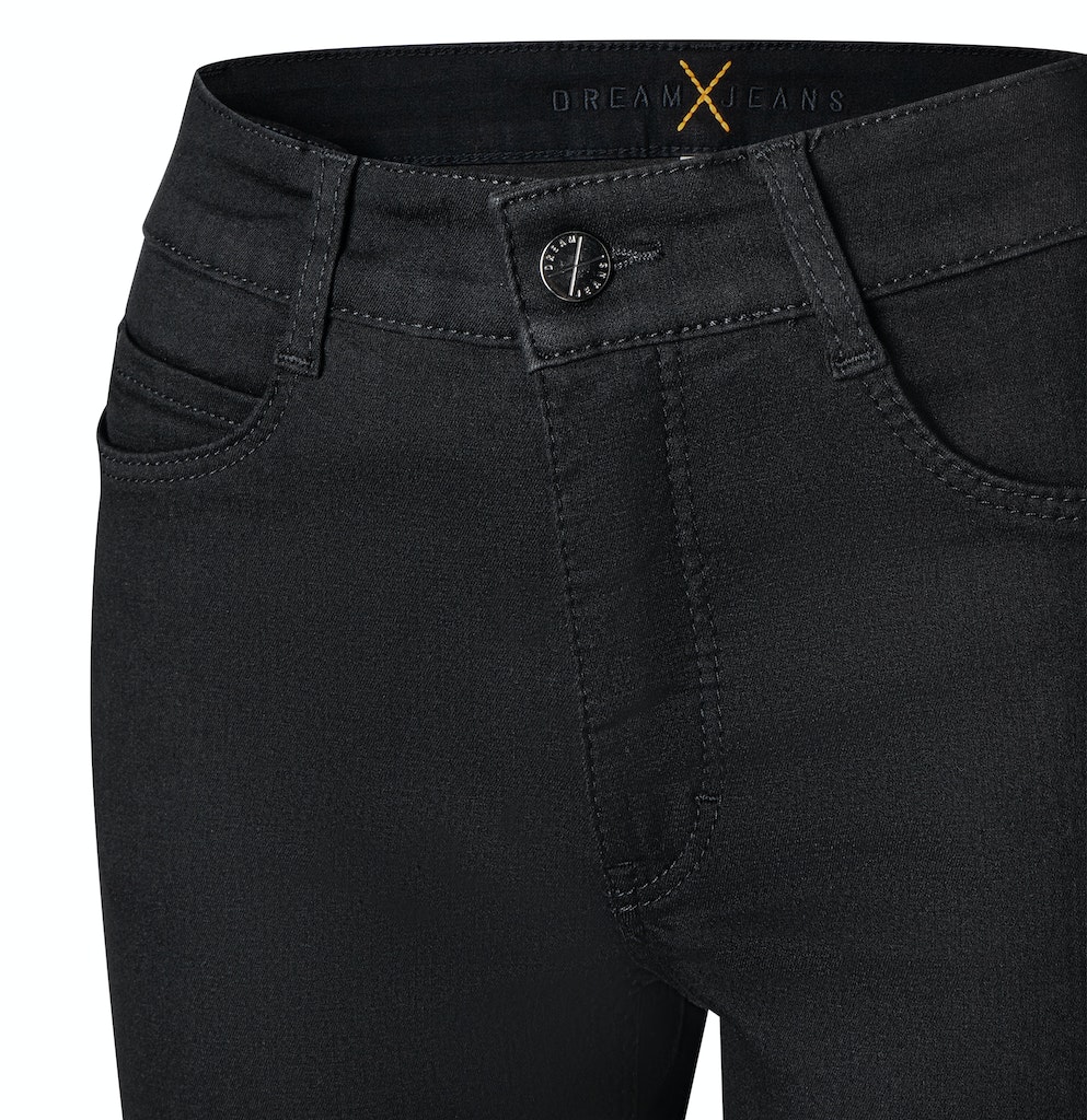 Straight Fit, gerades Bein, feminine Silhouette, normale Leibhöhe, bequeme Taille, Five Pocket, DREAM Denim, innovativer Hyperstretch Denim, sehr komfortable, hochelastische Qualität, formender Shaping-Effekt, hervorragendes Rücksprung-Verhalten, softer Griff, authentische Optik, Materialmix mit Reused Cotton und Recycled Polyester, über Better Cotton gesourcte Baumwolle, Das Model ist 1,75m groß und trägt die MAC Hosengröße 34, Fußweite bei Größe 36: 34cm