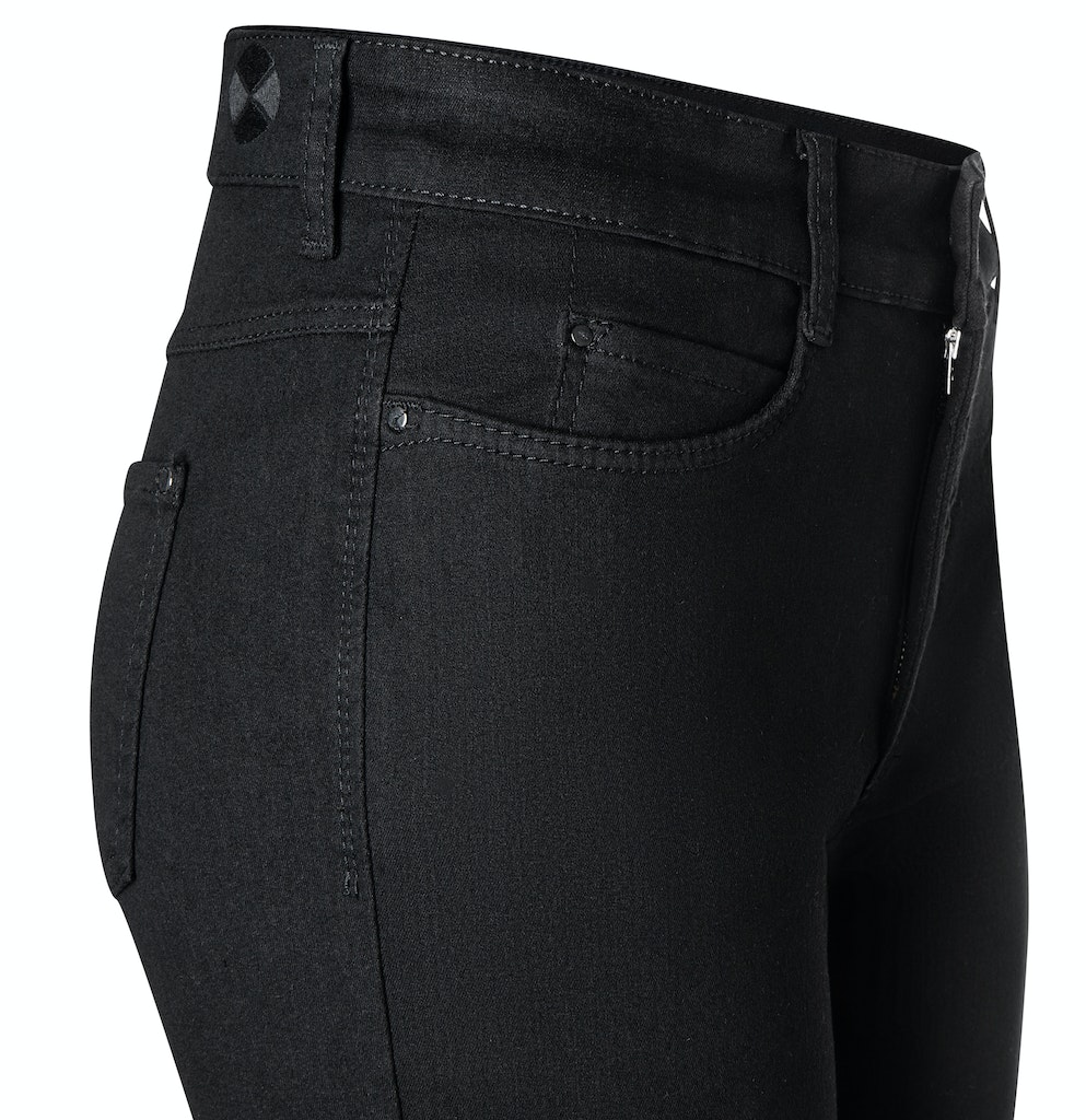 Straight Fit, gerades Bein, feminine Silhouette, normale Leibhöhe, bequeme Taille, Five Pocket, DREAM Denim, innovativer Hyperstretch Denim, sehr komfortable, hochelastische Qualität, formender Shaping-Effekt, hervorragendes Rücksprung-Verhalten, softer Griff, authentische Optik, Materialmix mit Reused Cotton und Recycled Polyester, über Better Cotton gesourcte Baumwolle, Das Model ist 1,75m groß und trägt die MAC Hosengröße 34, Fußweite bei Größe 36: 34cm