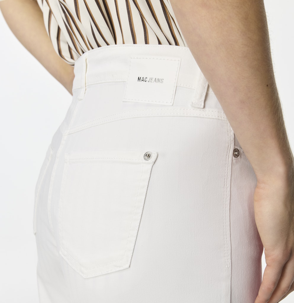 Wide Fit, Wide Leg, weites, gerades Bein, mittlere Leibhöhe, bequeme Taille, Five Pocket, offener Saum, DREAM Wonder Light Denim, hochelastischer Denim mit Modal, sehr leichte Qualität, besonders weich im Griff, figurformender Shaping-Effekt, hervorragendes Rücksprung-Verhalten, authentische Optik, hautfreundlich, hoher Tragekomfort, über Better Cotton gesourcte Baumwolle, Das Model ist 1,75m groß und trägt die MAC Hosengröße 34, Fußweite bei Größe 36: 56cm, Unsere Empfehlung: Das Modell eine Größe kleiner wählen!