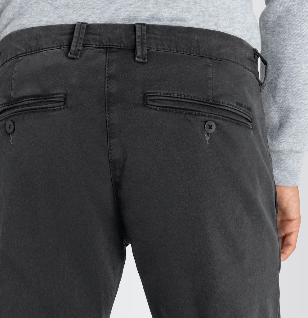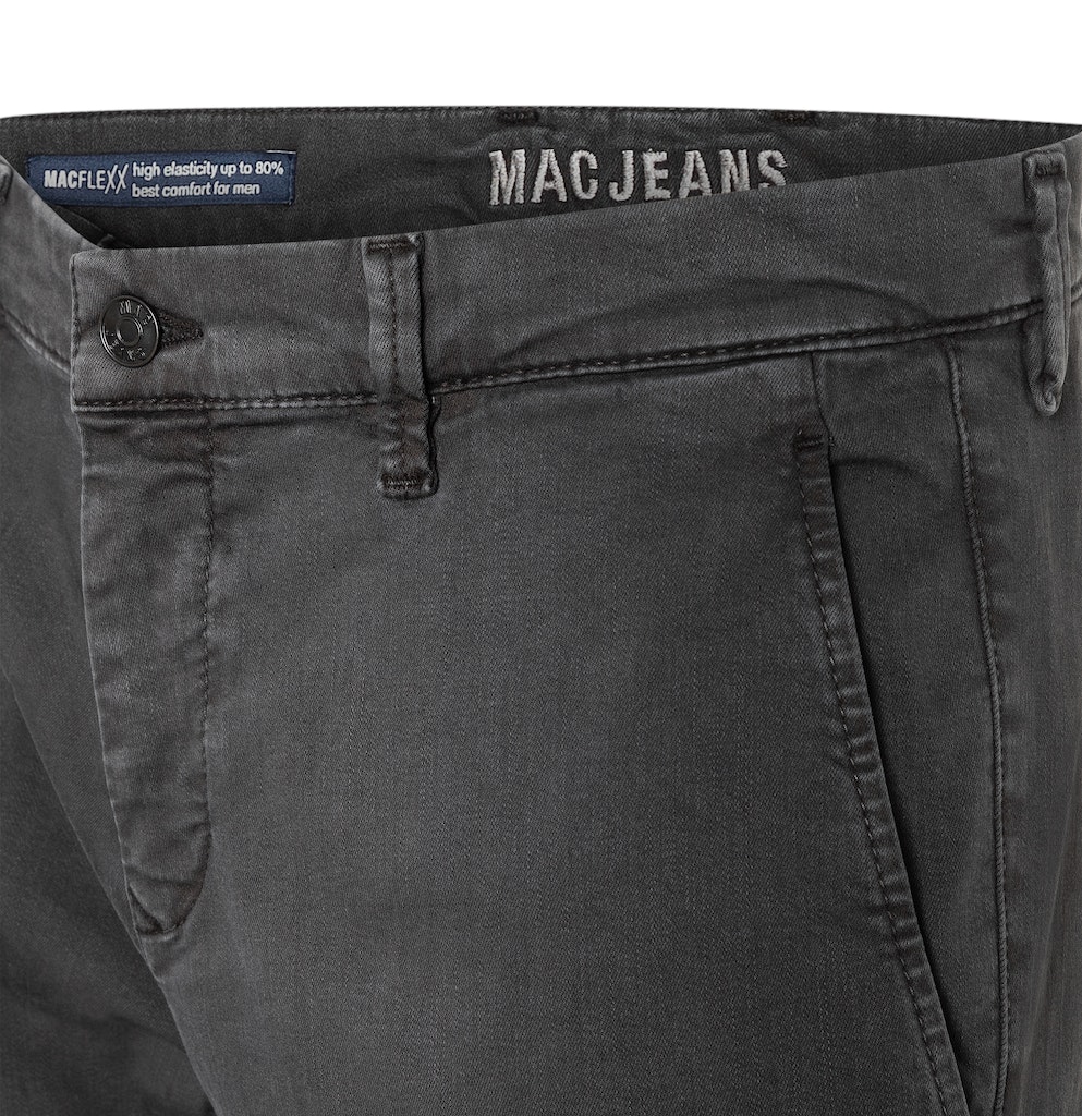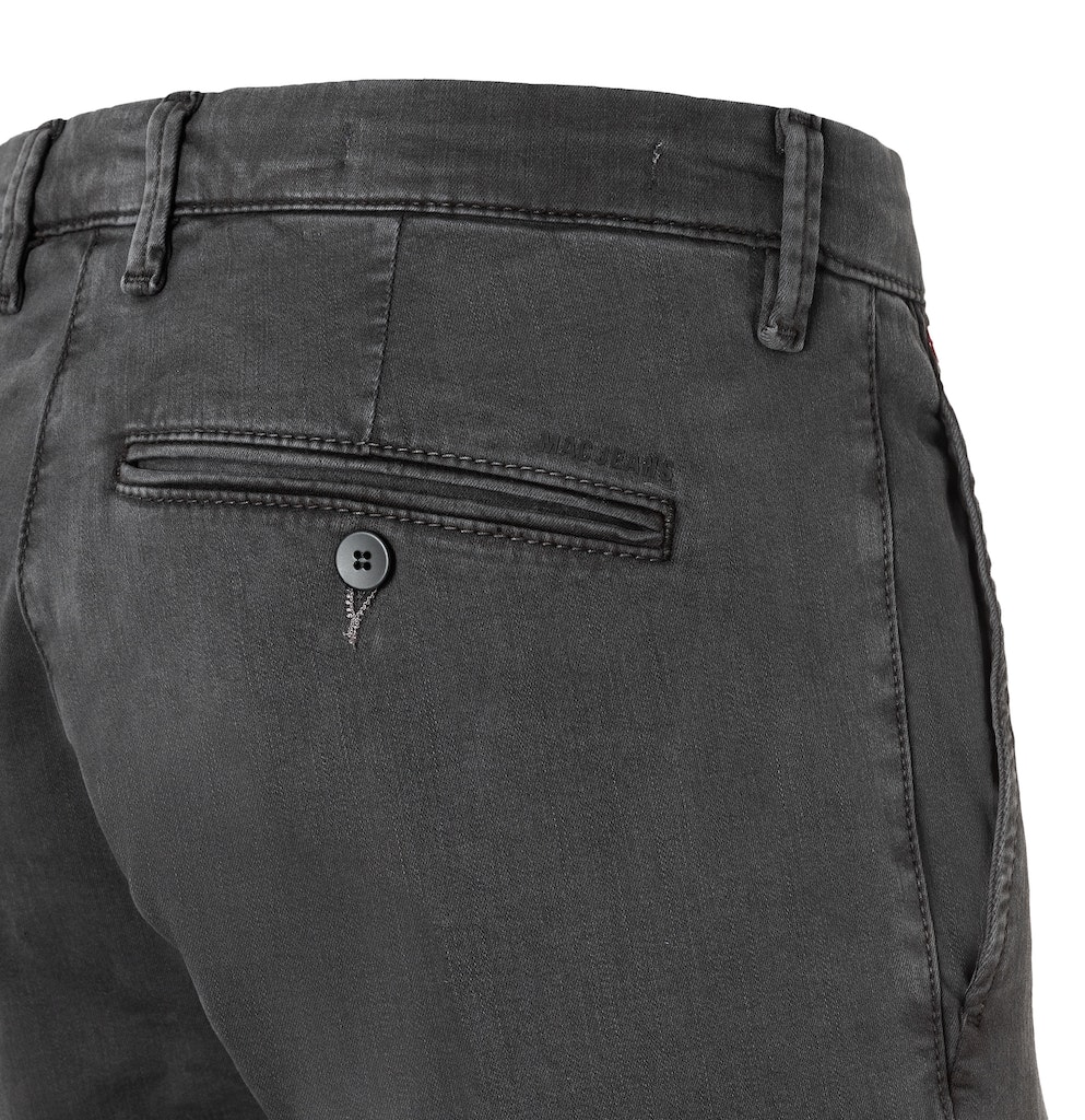 Ultimate Drivers Pants, Modern Fit, gerades, schmales Bein, Chino Design, gemäßigte, bequeme Leibhöhe, dehnbarer Bund, doppelte Gürtelschlaufen hinten für perfekten Halt, vorne tiefer und hinten höher geschnitten, Safety Pocket, MACFLEXX Denim mit hoher Elastizität von bis zu 80 Prozent, hoher Tragekomfort, hohe Formstabilität, ideal für lange Autofahrten geeignet, atmungsaktiv, sportive Optik, über Better Cotton gesourcte Baumwolle, Das Model ist 1,85m groß und trägt die MAC Bundweite 33 und Länge 32, Fußweite bei Größe 33: 34cm