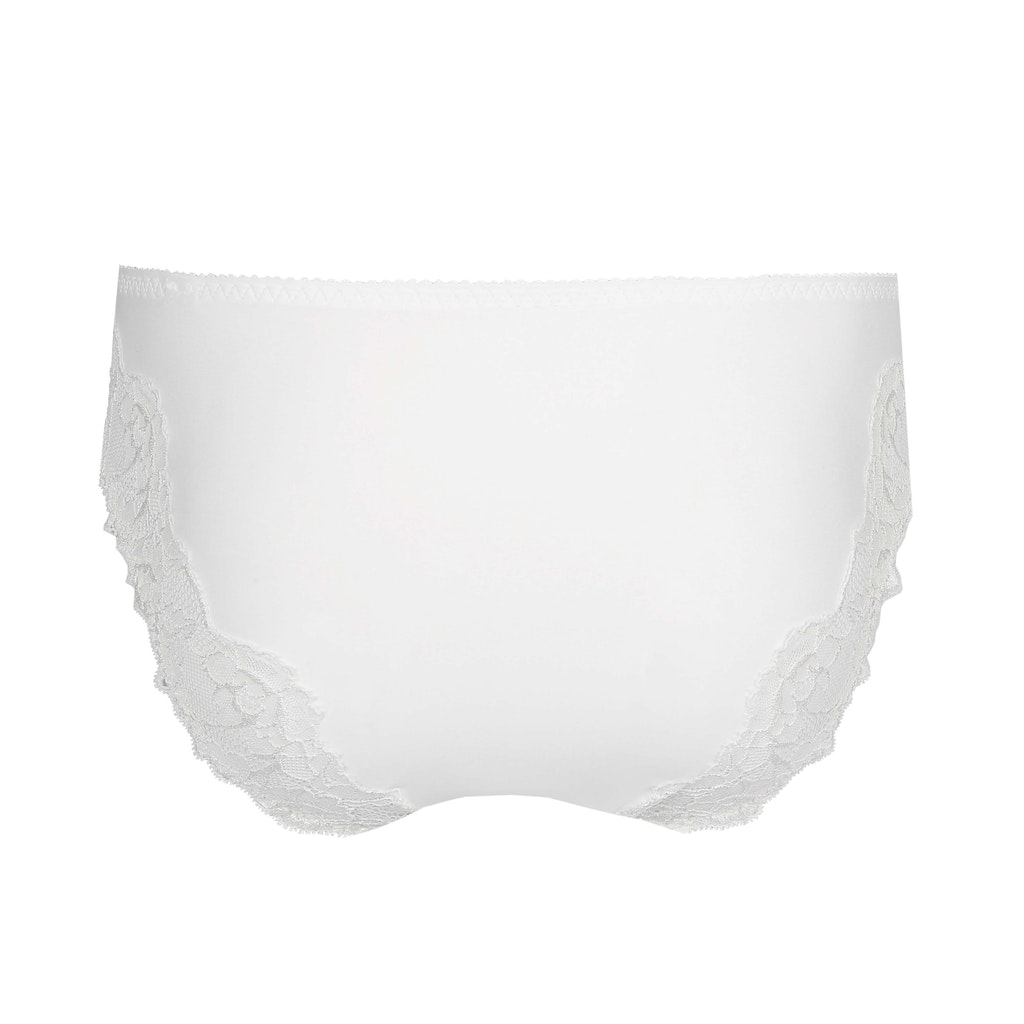 Verspielter Rioslip aus kariertem Stoff, mit luxuriösem Detail aus elastischer Spitze, die bis über den Po durchläuft.