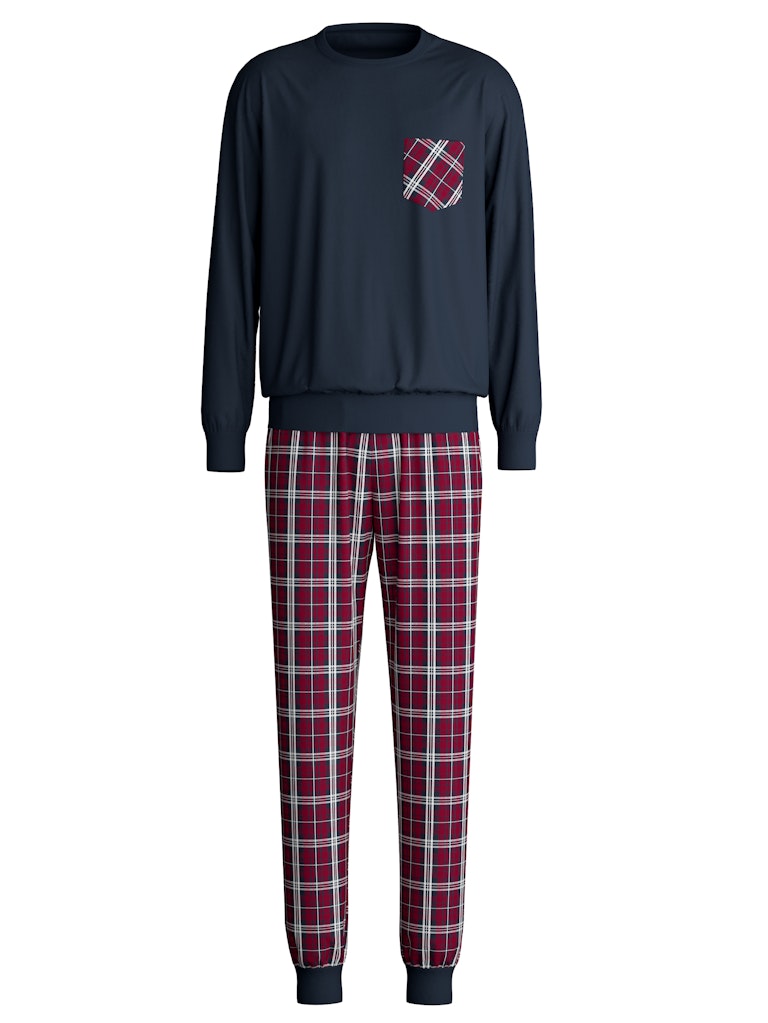 Nice and warm thanks to heavy interlock fabric|with soft cuffs on the hems|made from soft pure organic cotton|gentle on the skin and breathable|pants with a fabric-covered waistband|relaxed fit