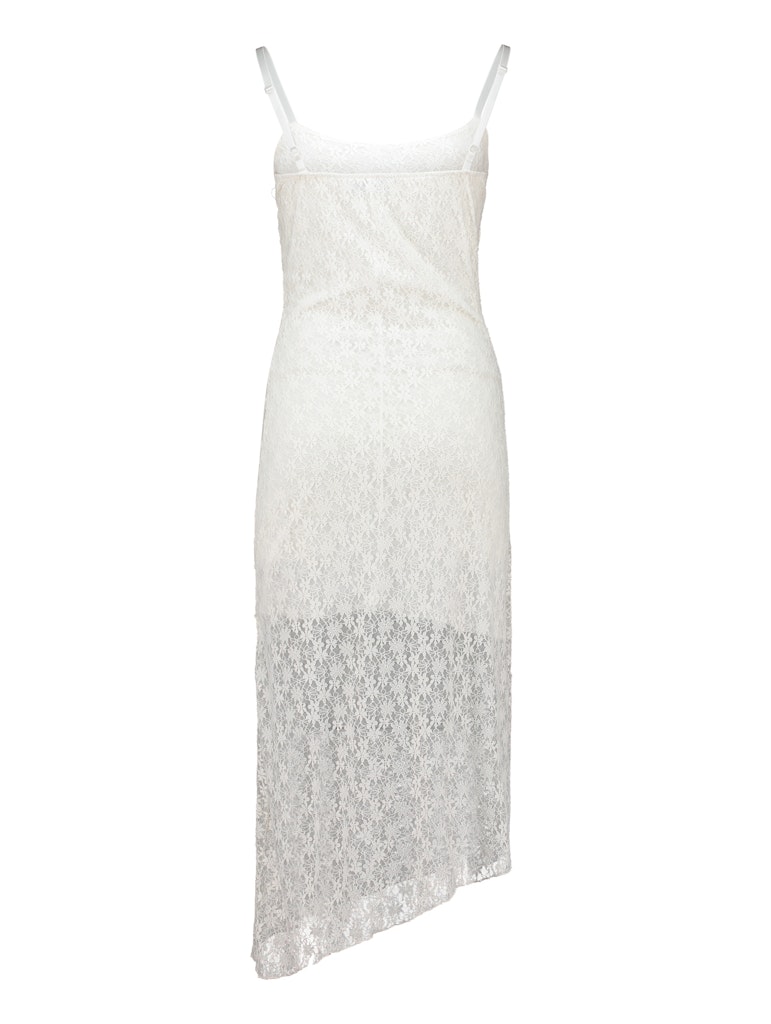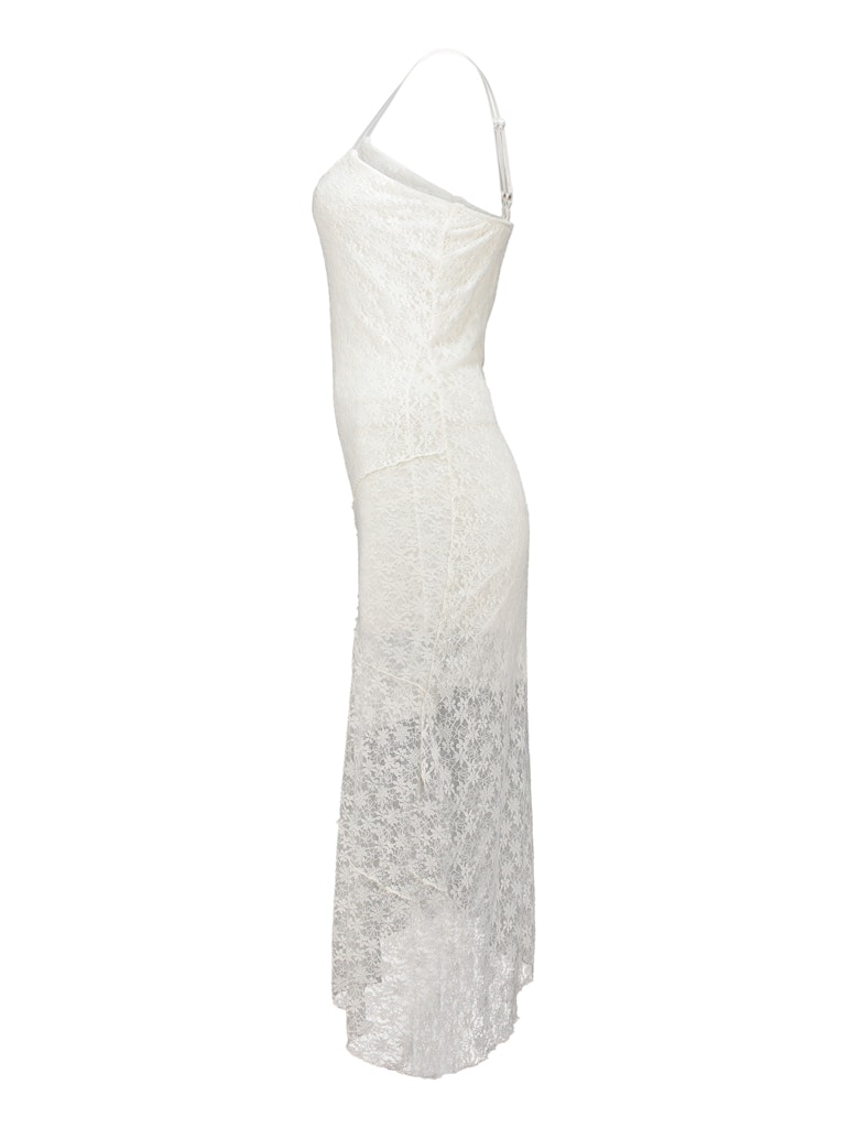 Maxikleid aus Spitze mit Spaghettiträgern und asymmetrischem Saum