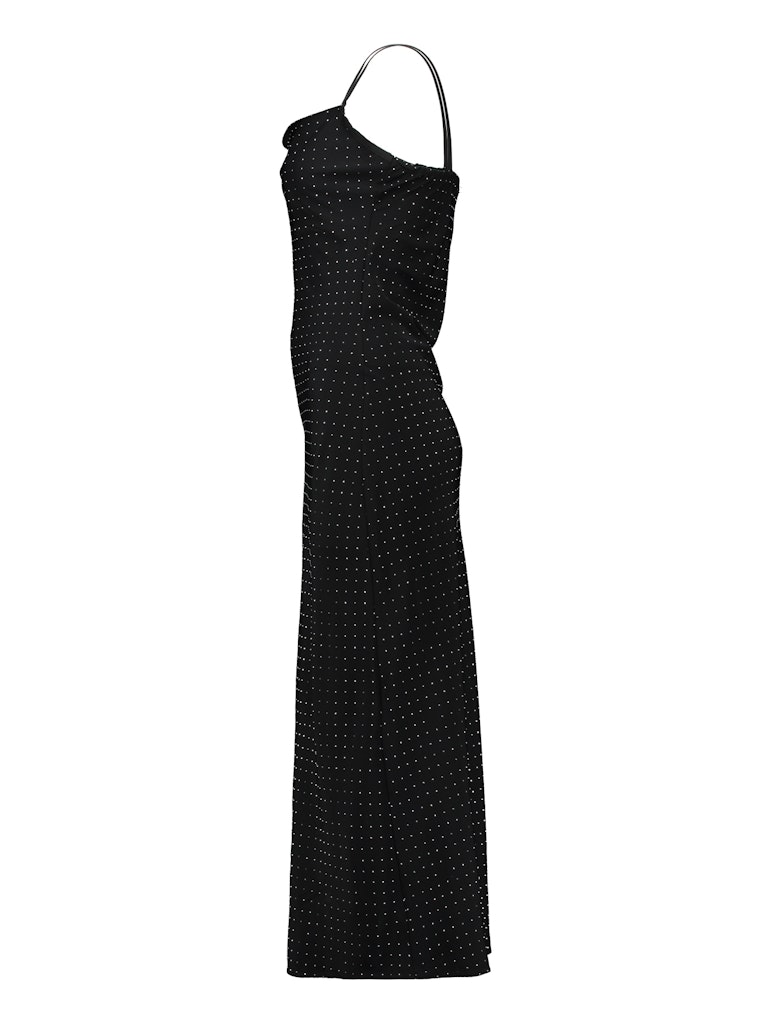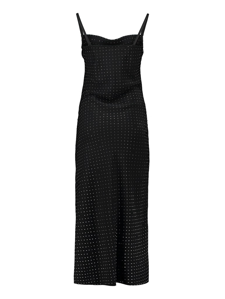 Glitzer-Kleid mit dünnen Trägern, mit feinen/gleichmäßig angeordneten Strasssteinen, sowie einem leicht fallenden Wasserfallausschnitt