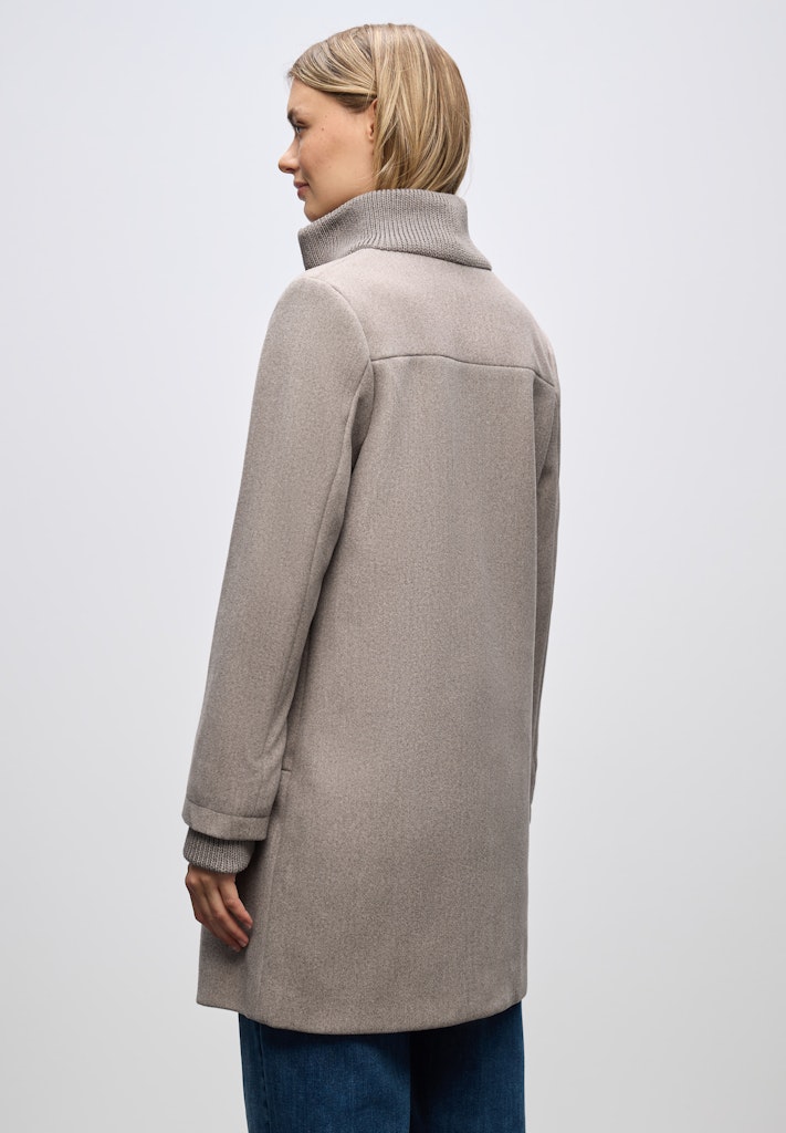 Der Damenmantel von Street One kombiniert klassische Eleganz mit modernen Details. Strickelemente am Stehkragen setzen einen stilvollen Akzent, während die Wolloptik für eine hochwertige Ausstrahlung sorgt. Seitliche Taschen mit Zipper und eine durchgehende Knopfleiste machen ihn zum perfekten Begleiter für die Übergangszeit. Damenmantel Stehkragen in Strickqualität Knopfleiste Seitliche Taschen mit Zipper Moderne Wolloptik Material: Obermaterial: 100% Polyester; Futter: 100% Polyester