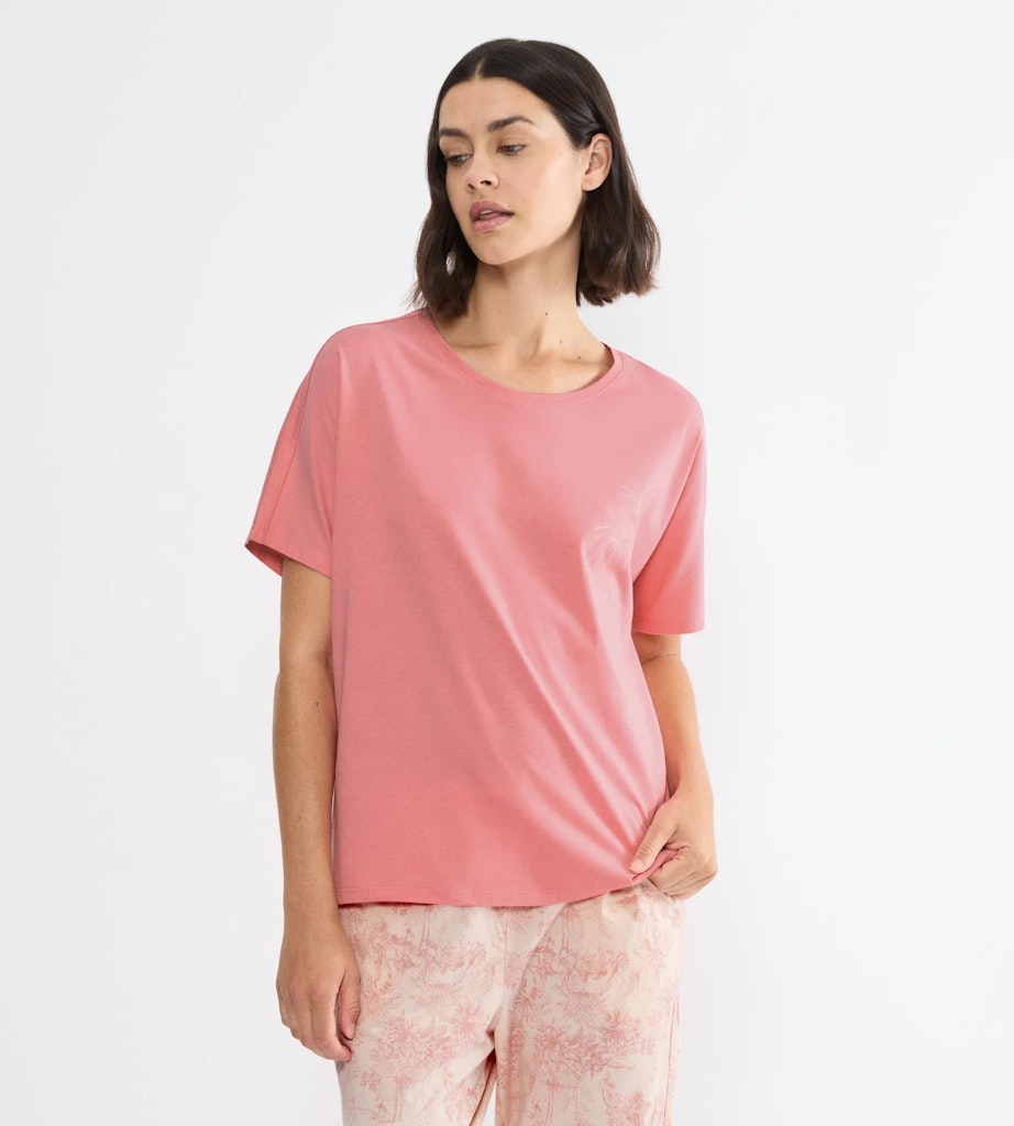 Bequemes Kurzarm-Top. Mit legerer Passform und abgerundetem Saum für einen modernen Look, komplett aus weicher und atmungsaktiver Baumwolle gefertigt.