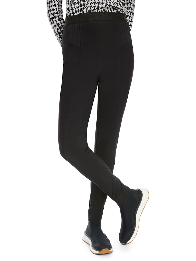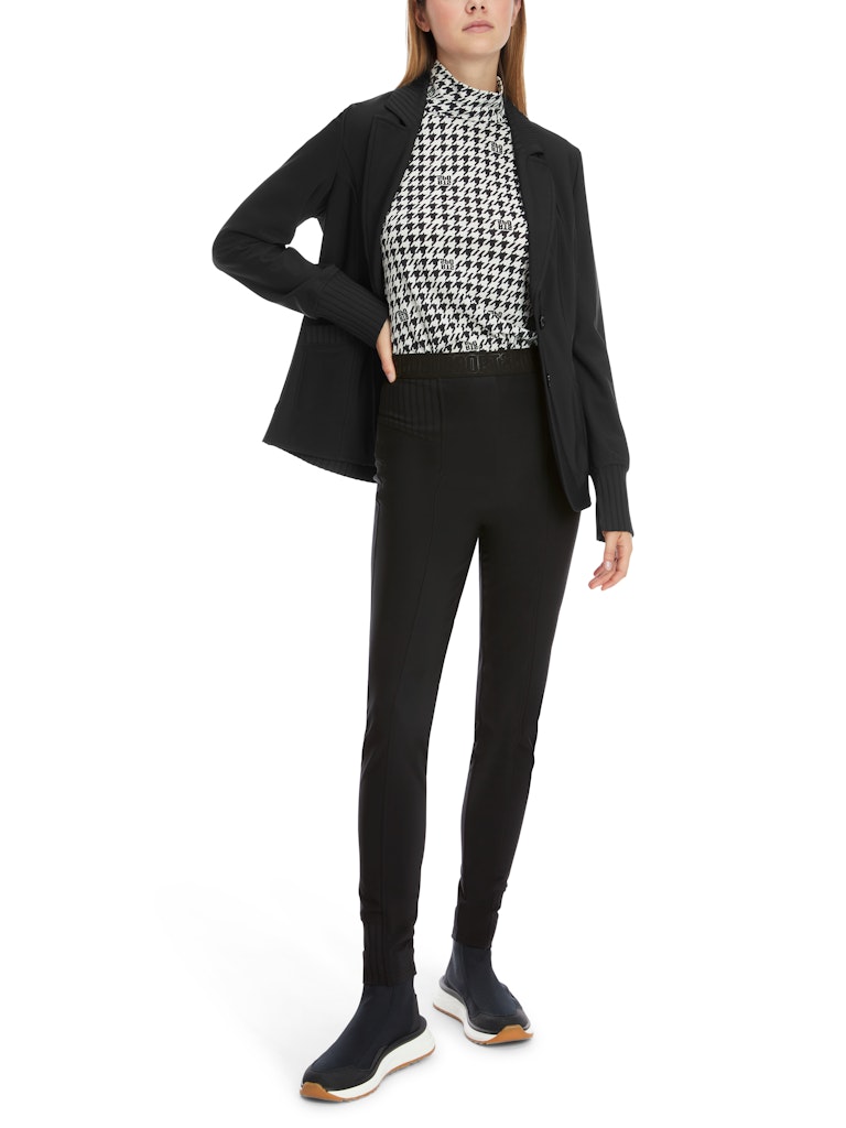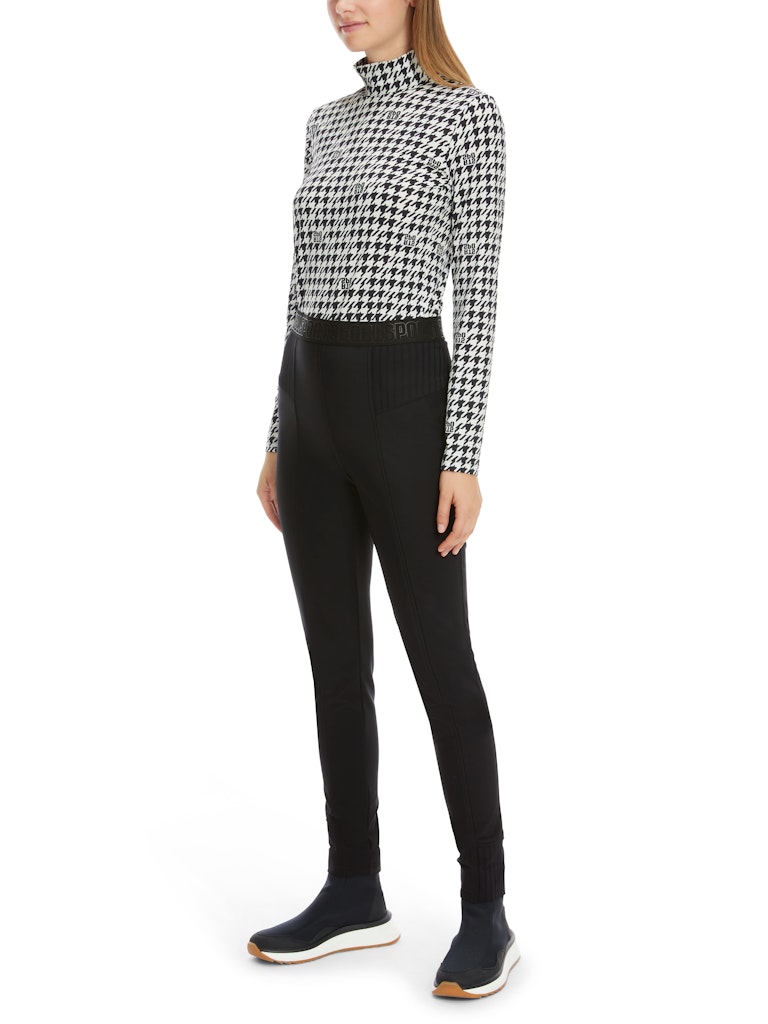 Modell SINNAR im sportiven Slim Fit|Ein hoher elastischer Bund mit Marc Cain Sports Schriftzug und ausdrucksstarken Rippen-Inserts an den Hüften und dem Saum kennzeichnen die Hose Modell SINNAR. Sie kommt im elastischen Slim Fit Schnitt. Teilungsnähte unterstreichen den sportiven Look.|Figurnah|Mit Rippen-Inserts|Made in Europe|SINNAR - SLIM FIT - HIGH - Beinlänge: 29"|Das Model ist 179 cm groß und trägt N3/38.