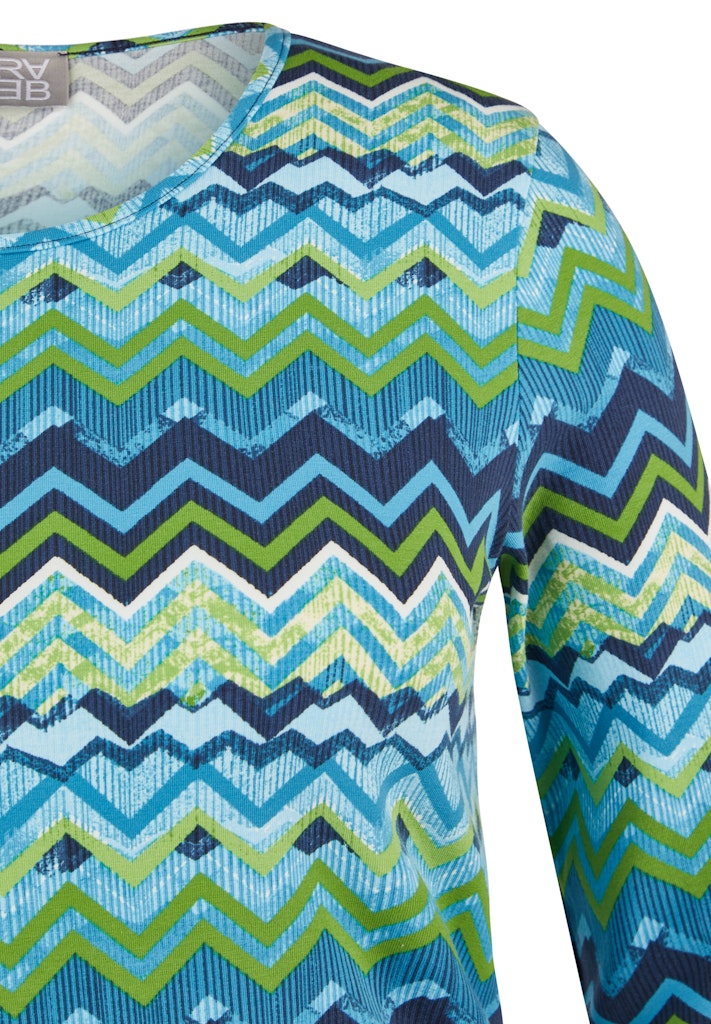 Dieses Shirt bringt mit seinem farbenfrohen Zickzackmuster frischen Schwung in Ihre Garderobe. Der klassische Rundhalsausschnitt und die 3/4-Ärmel machen es zu einem idealen Alltagsbegleiter. Gefertigt aus elastischem Baumwolljersey bietet es angenehmen Tragekomfort und eine ideale Passform _ perfekt zu Jeans oder schlichten Hosen kombinierbar. Farbintensives Zickzackmuster. Rundhalsausschnitt. Angenehm weich und dehnbar.