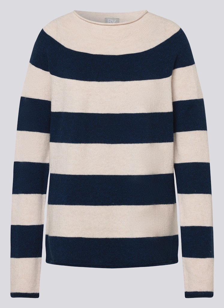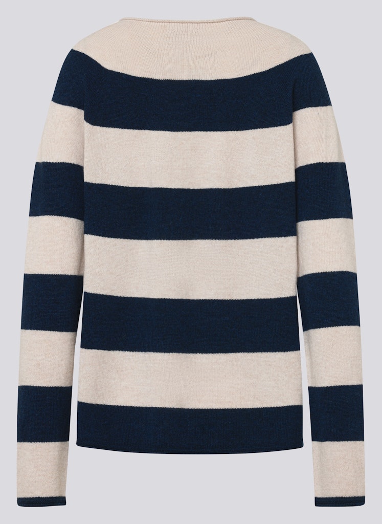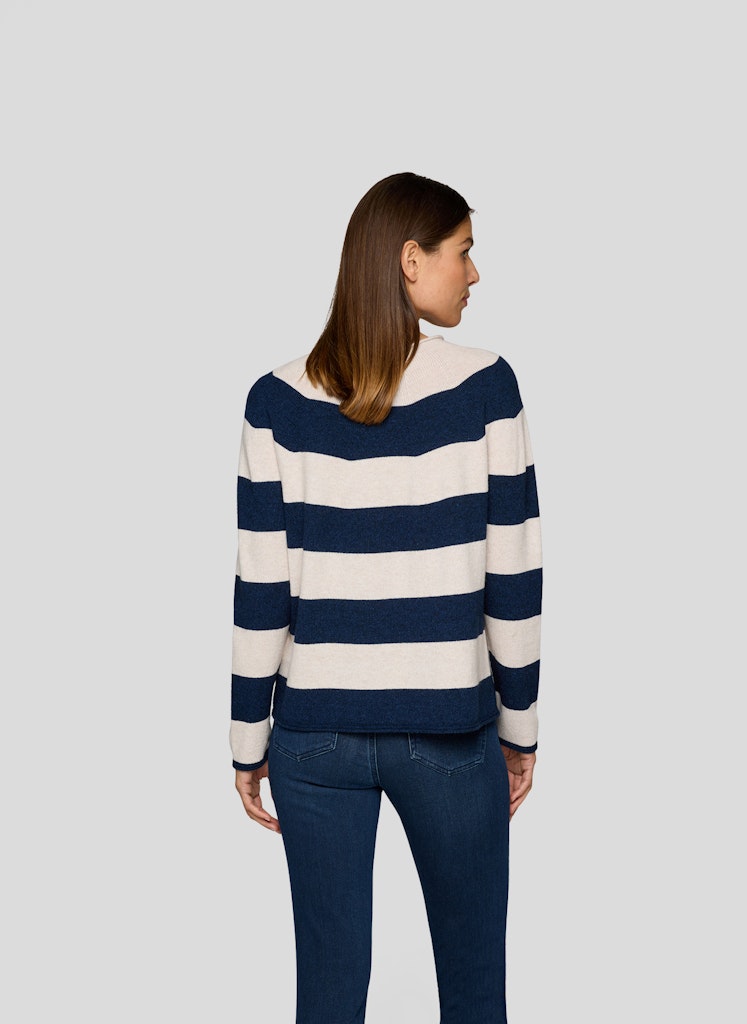 Dieser Strickpullover vereint klassische Streifen mit einem modernen Look. Der weiche Materialmix mit hohem Wollanteil sorgt für angenehme Wärme, während der Rundhalsausschnitt und die fein gerippten Abschlüsse den Look dezent abrunden. Die großzügigen Blockstreifen setzen modische Akzente und lassen sich vielseitig kombinieren _ ob lässig zu Jeans oder etwas eleganter zu Stoffhosen. Angenehm weicher Wollmix. Zweifarbiger Strukturstrick. Rundhalsausschnitt mit Rippkante. Gerade geschnittene Form. Gerippte Abschlüsse an Ärmeln und Saum.