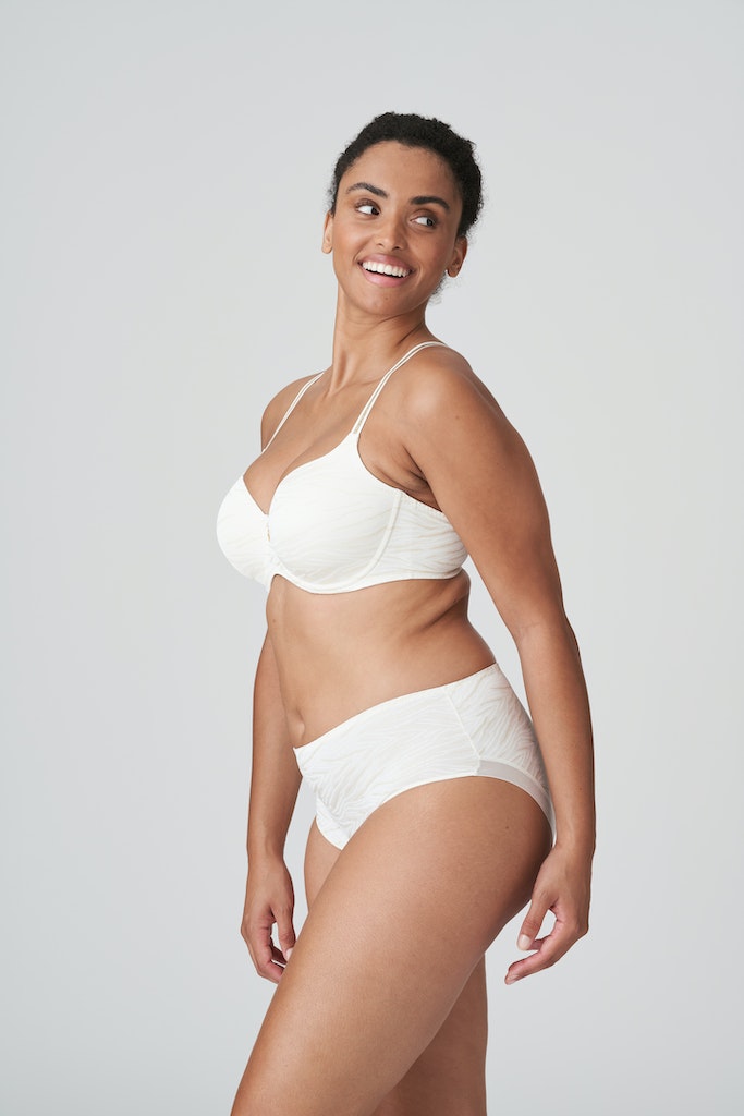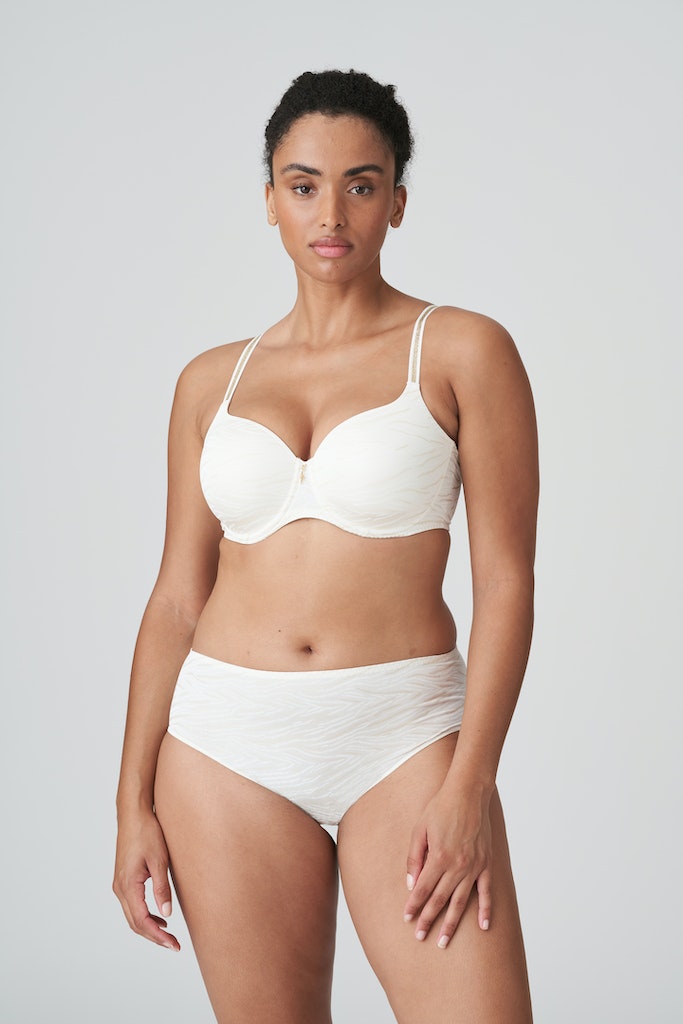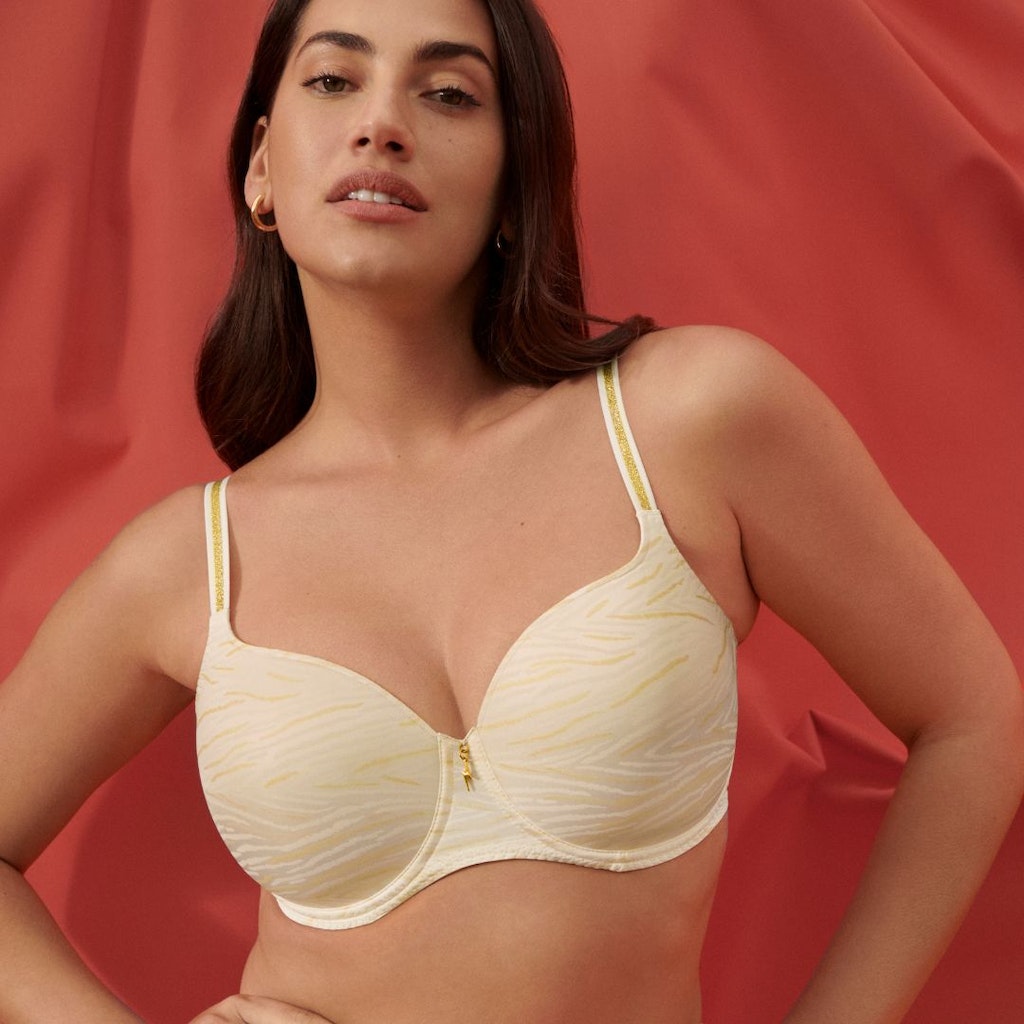 T-Shirt-BH mit herzförmigen gepolsterten Cups, überzogen mit Satin. Der Stoff ist mit einem leicht glänzenden Zebramuster bedruckt. Die coolen glitzernden Träger verleihen dem sportlich-schicken Look den letzten Schliff.