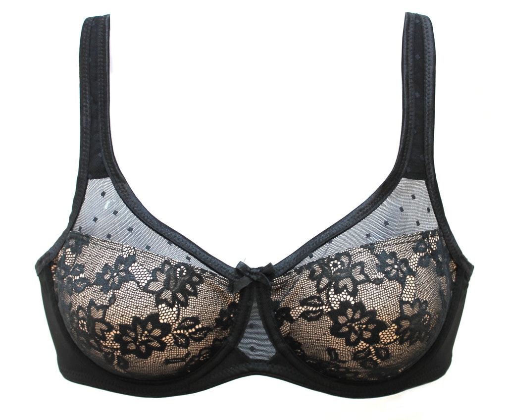 NUANCE Minimizer-BH (ohne Wattierung) von Nuance mit eingearbeiteten Formbügeln im eleganten Lagenlook, der die Büste optisch verkleinert. Obercups aus zartem leicht transparentem Tüll und Untercups blickdicht unterlegt und mit zarter Jacquardspitze verziert. Mit breiteren, gefütterten Trägern für einen bequemen Halt ohne Einschneiden auf den Schultern. Träger und Rückenverschluss verstellbar. Aus 79% Polyamid, 15% Polyester, 6% Elasthan. Sexy Dessous. Spitzen-Dessous. Romantische Dessous. Verspielte Dessous. BHs sind nicht trocknergeeignet, da die Versteller und Ringe durch die Hitze beschädigt werden und brechen.