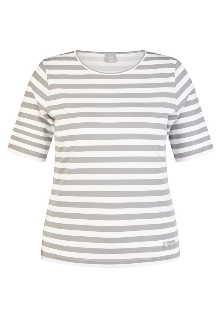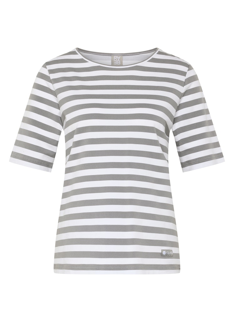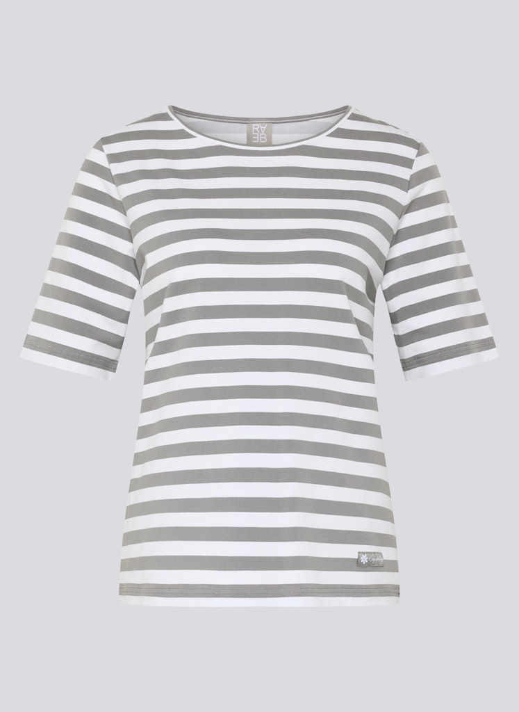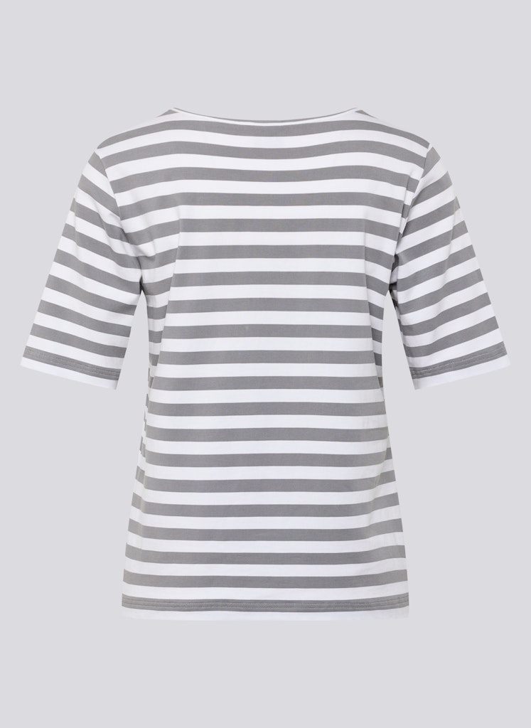 Dieses Shirt liegt angenehm weich auf der Haut und bietet dank Stretch-Anteil eine bequeme Passform mit viel Bewegungsfreiheit. Das zeitlose Streifenmuster verleiht dem Modell eine frische Note, während der Rundhalsausschnitt und die kurzen Ärmel für einen unkomplizierten Look sorgen. Ein kleines Label am Saum rundet das Design dezent ab. Hoher Baumwollanteil. Mit Elasthan für Komfort. Klassisches Streifendessin. Rundhalsausschnitt. Dezentes Label.