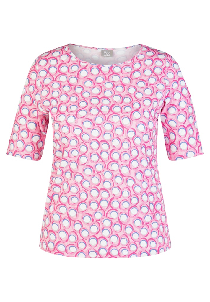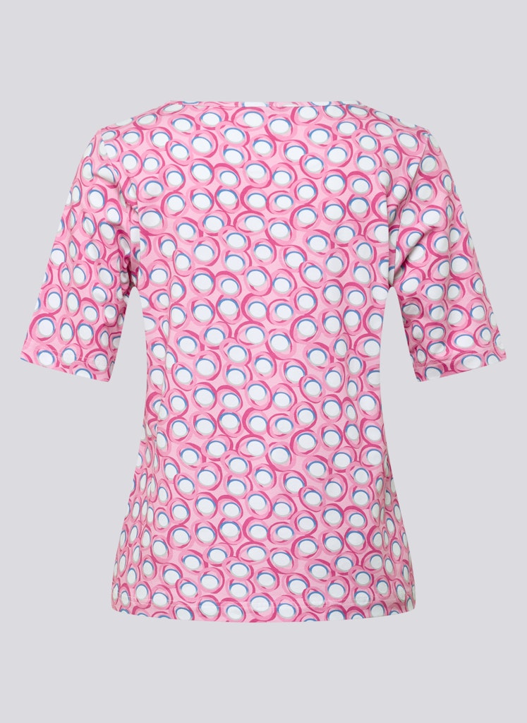Dieses Shirt bringt mit seinem grafischen Kreismuster frische Dynamik in den Look. Der klassische Rundhalsausschnitt und die halblangen Ärmel sorgen für eine zeitlose Silhouette. Dank des Baumwollanteils fühlt sich das Material angenehm weich auf der Haut an, während der Elasthananteil für komfortable Dehnbarkeit und eine gute Passform sorgt. Ein vielseitiger Begleiter für unkomplizierte Alltags-Outfits. Baumwollstretch-Qualität. Angenehm weich im Griff. Mit Elasthan für Komfort. Rundhalsausschnitt. Halbarm. Formstabile Passform.