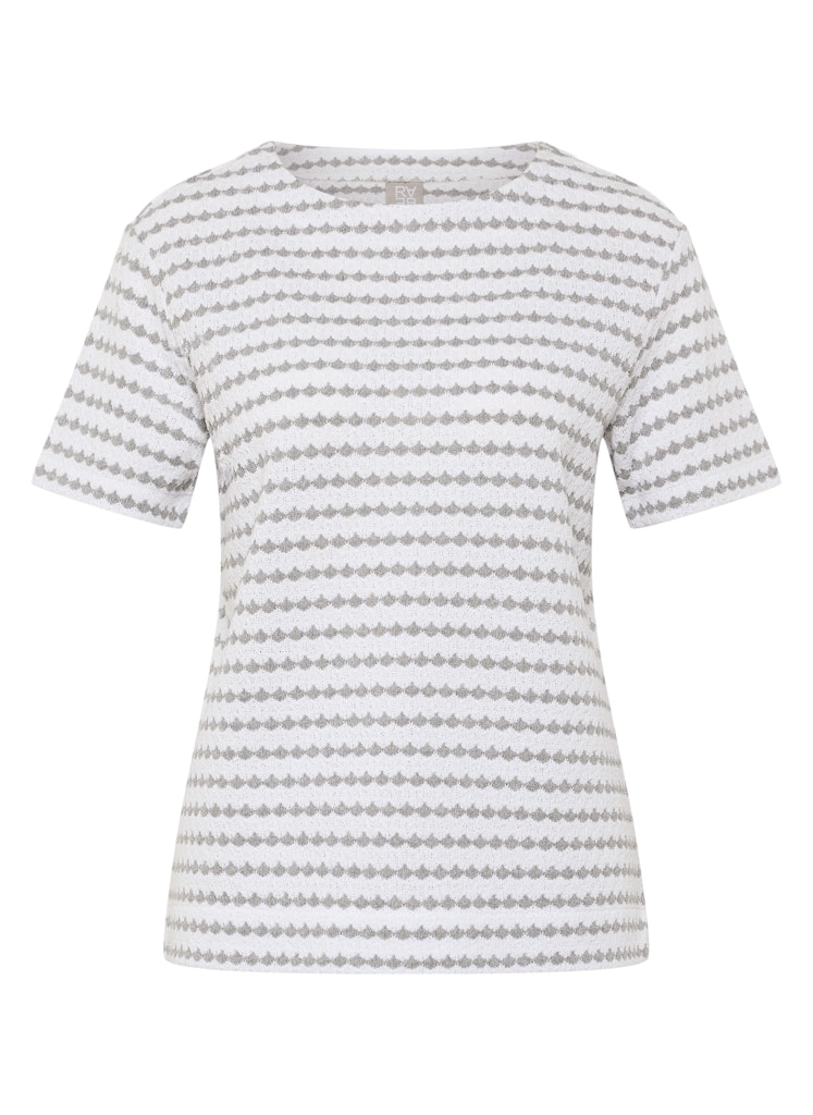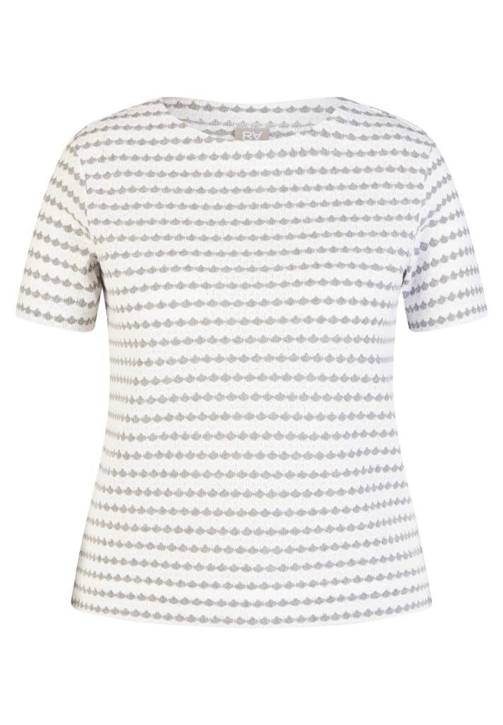 Dieses Shirt überzeugt mit einer feinen Struktur und einem harmonischen Allover-Muster. Der klassische Rundhalsausschnitt und die kurzen Ärmel sorgen für eine zeitlose Silhouette. Die Materialmischung bietet angenehmen Tragekomfort, ist formstabil und pflegeleicht _ ideal für vielseitige Alltagslooks. Feine Strukturqualität. Klassischer Rundhalsausschnitt. Angenehmer Materialmix. Pflegeleicht und formstabil. Vielseitig kombinierbar.