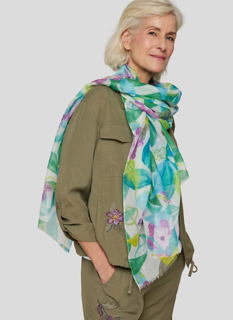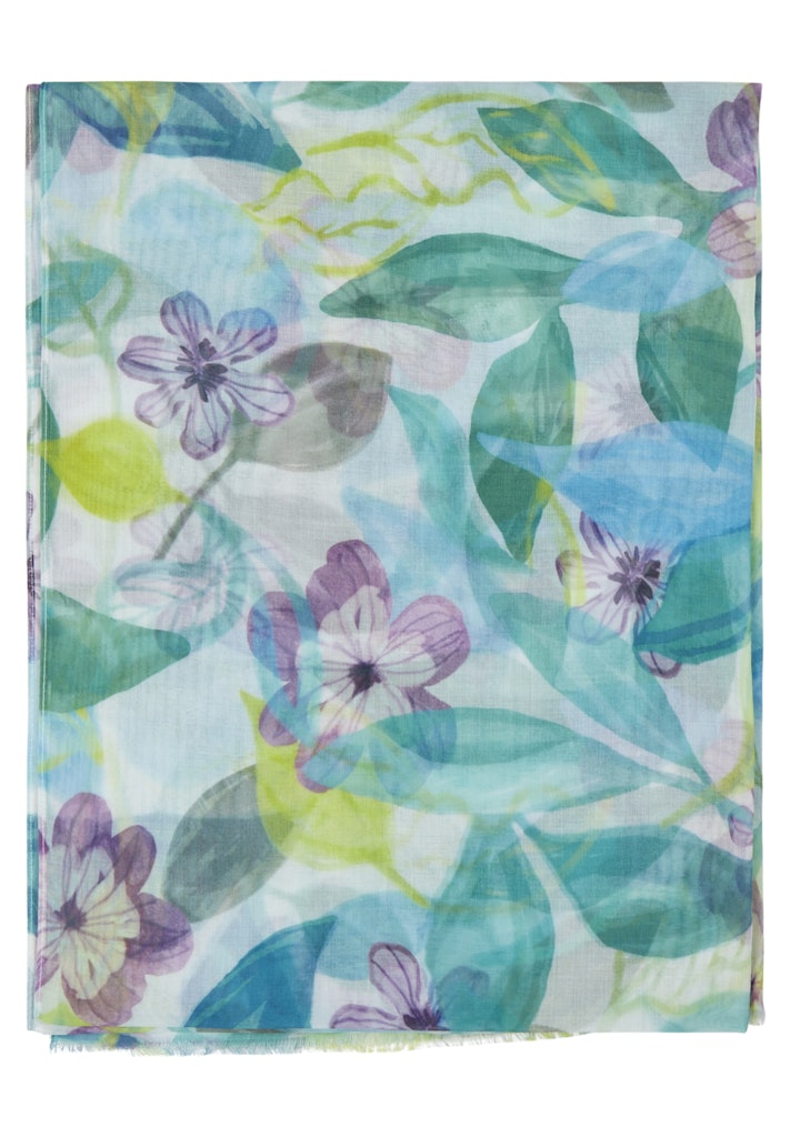 Das sanfte Aquarell-Muster in Blau-, Grün- und Lilatönen sorgt für einen eleganten Look und erinnert an eine blühende Sommerwiese. Dank des leichten, luftigen Materials schmiegt er sich angenehm an die Haut und ist der perfekte Begleiter für jede Jahreszeit. Florales Aquarell-Design für einen frischen Look. Leichtes, weiches Material für höchsten Tragekomfort.Vielseitig kombinierbar _ ideal für Alltag und besondere Anlässe. Fransenabschluss für eine verspielte Note.