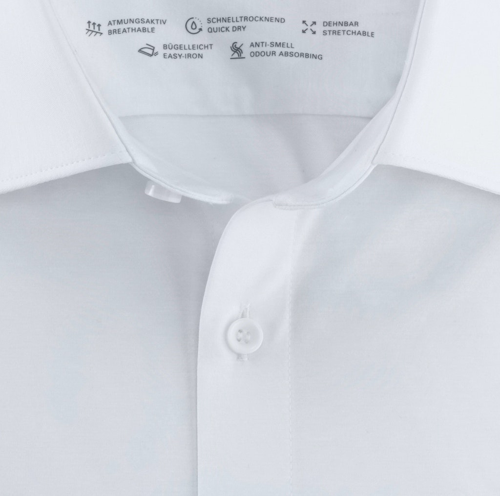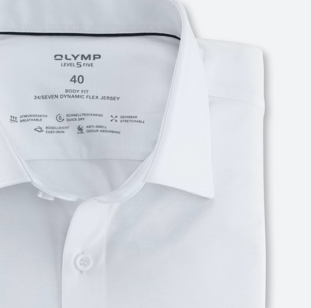 Wer ein Businesshemd mit perfekter Balance von Optik und Tragekomfort sucht, landet unweigerlich bei den Hemden der Linie OLYMP 24/Seven Dynamic Flex Jersey. Als besonders moderne und innovative Variante begeistert dieses OLYMP Level Five: Die feine Baumwollqualität liegt angenehm leicht auf der Haut und bietet mit seinen atmungsaktiven, schnelltrocknenden und geruchsneutralisierenden Eigenschaften die Features eines Funktionshemdes. Ein smarter Allrounder in schmaler Body-Fit-Silhouette, mit hohem Stretch-Anteil und modischem New York Kent.