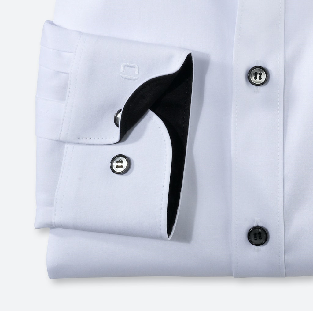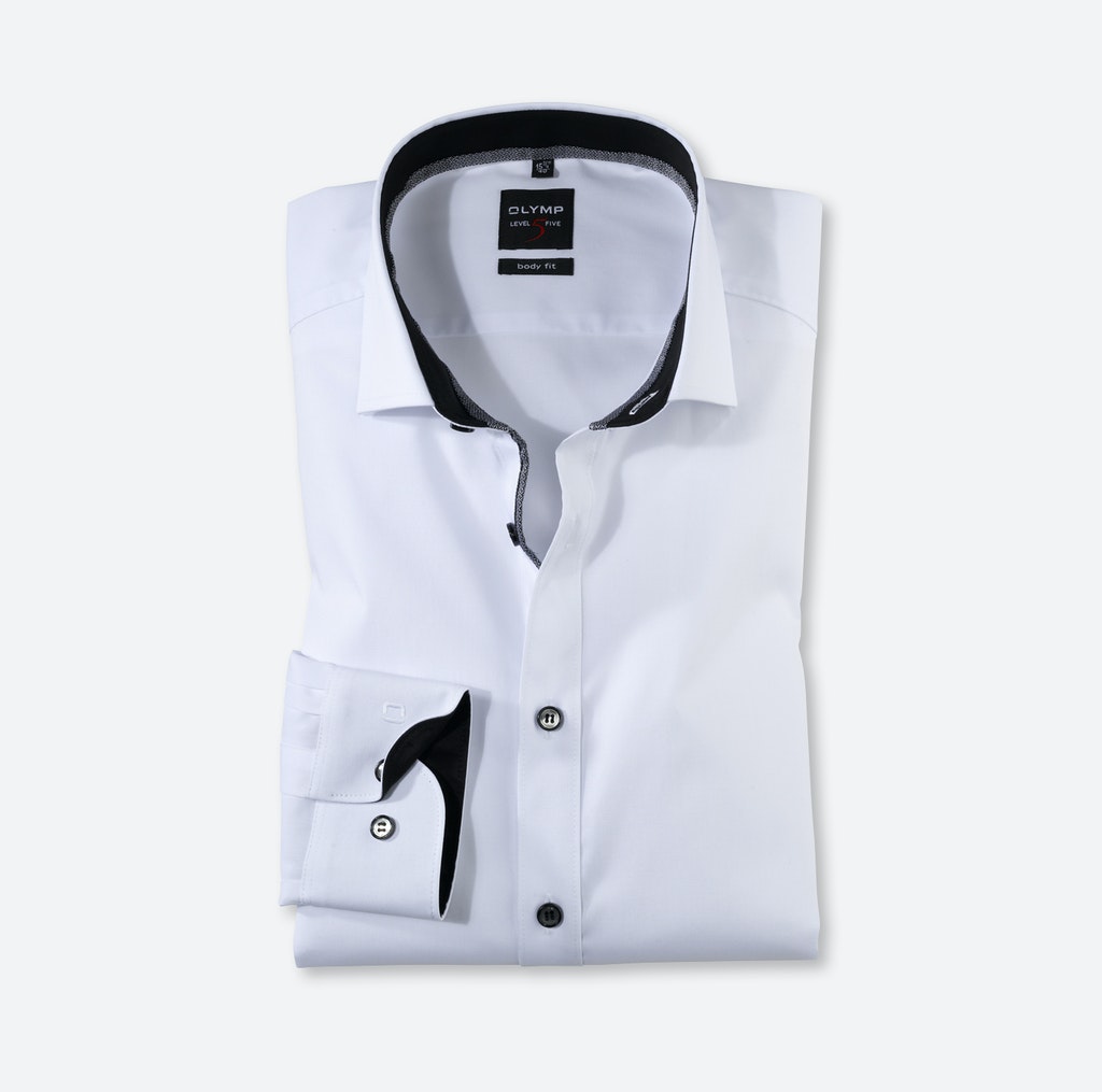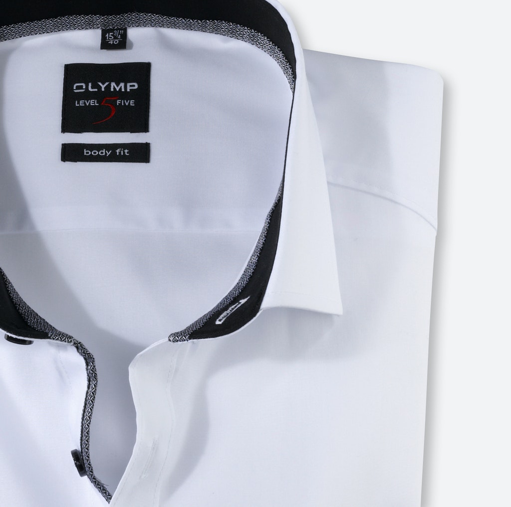 Maskuline Eleganz im cleanen Uni-Design vermittelt dieses Businesshemd der Linie OLYMP Level Five. Raffiniert: Dezente Kontrastbesätze erzeugen modernen Appeal und suggerieren den offen getragenen Kragen als spannende Alternative zum klassischen Auftritt mit Krawatte. Die leichte, extra-feine Baumwollqualität hat GREEN CHOICE Standard und eignet sich optimal für wärmere Tage. Im körpernahen Body Fit und mit majestätischem Royal Kent designt, präsentiert sich hier ein moderner Business-Allrounder in bewährten Dresscode-Optik.