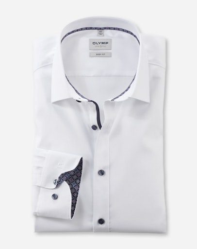 Der moderne Look dieses OLYMP Level Five entsteht durch die dezente Pin-Point-Struktur in Weiß und die dunklen Kontrastknöpfe. Für optimalen Tragekomfort wurde die beliebte Comfort-Stretch-Qualität verarbeitet, aus feiner Baumwolle mit dezent elastischen und bügelleichten Eigenschaften. Im taillierten Body Fit für den sportlich schlanken Mann.
