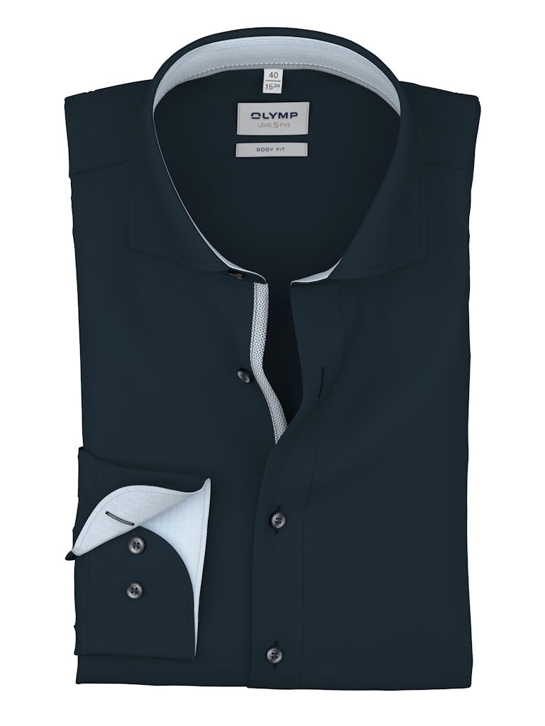 Maskuline Eleganz im cleanen Uni-Design vermittelt dieses Businesshemd der Linie OLYMP Level Five. Raffiniert: Dezente Kontrastbesätze erzeugen modernen Appeal und suggerieren den offen getragenen Kragen als spannende Alternative zum klassischen Auftritt mit Krawatte. Die leichte, extra-feine Baumwollqualität hat GREEN CHOICE Standard und eignet sich optimal für wärmere Tage. Im körpernahen Body Fit und mit majestätischem Royal Kent designt, präsentiert sich hier ein moderner Business-Allrounder in bewährten Dresscode-Optik.