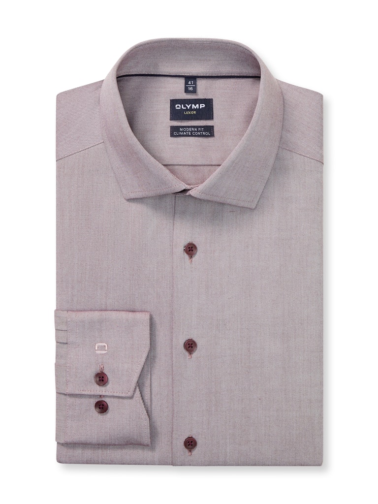 In solidem Twill aus einer hocheffizienten Fasermischung gefertigt, präsentiert sich das innovative OLYMP Luxor 24/7 Climate Control. Es ist atmungsaktiv, schnelltrocknend, elastisch, feuchtigkeits- und temperaturregulierend, pflegeleicht und bügelfrei. Perfekte körpernahe Formstabilität in feiner Diagonalstruktur.